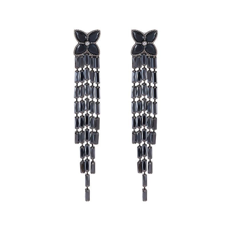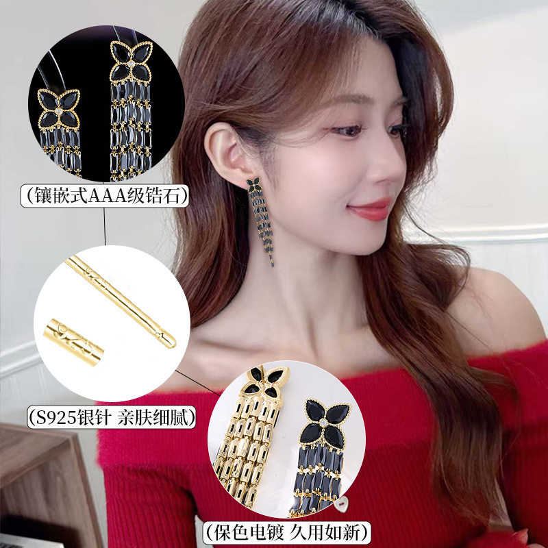 轻奢气质长款流苏幸运草耳环s925银针感宴会礼服搭配精致耳饰
