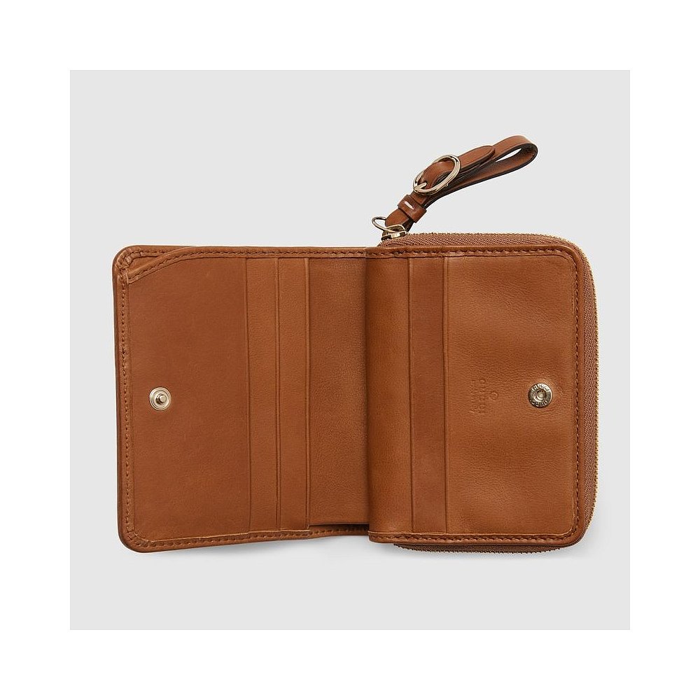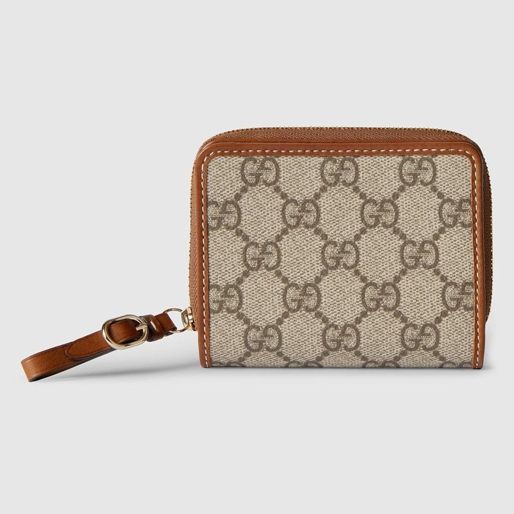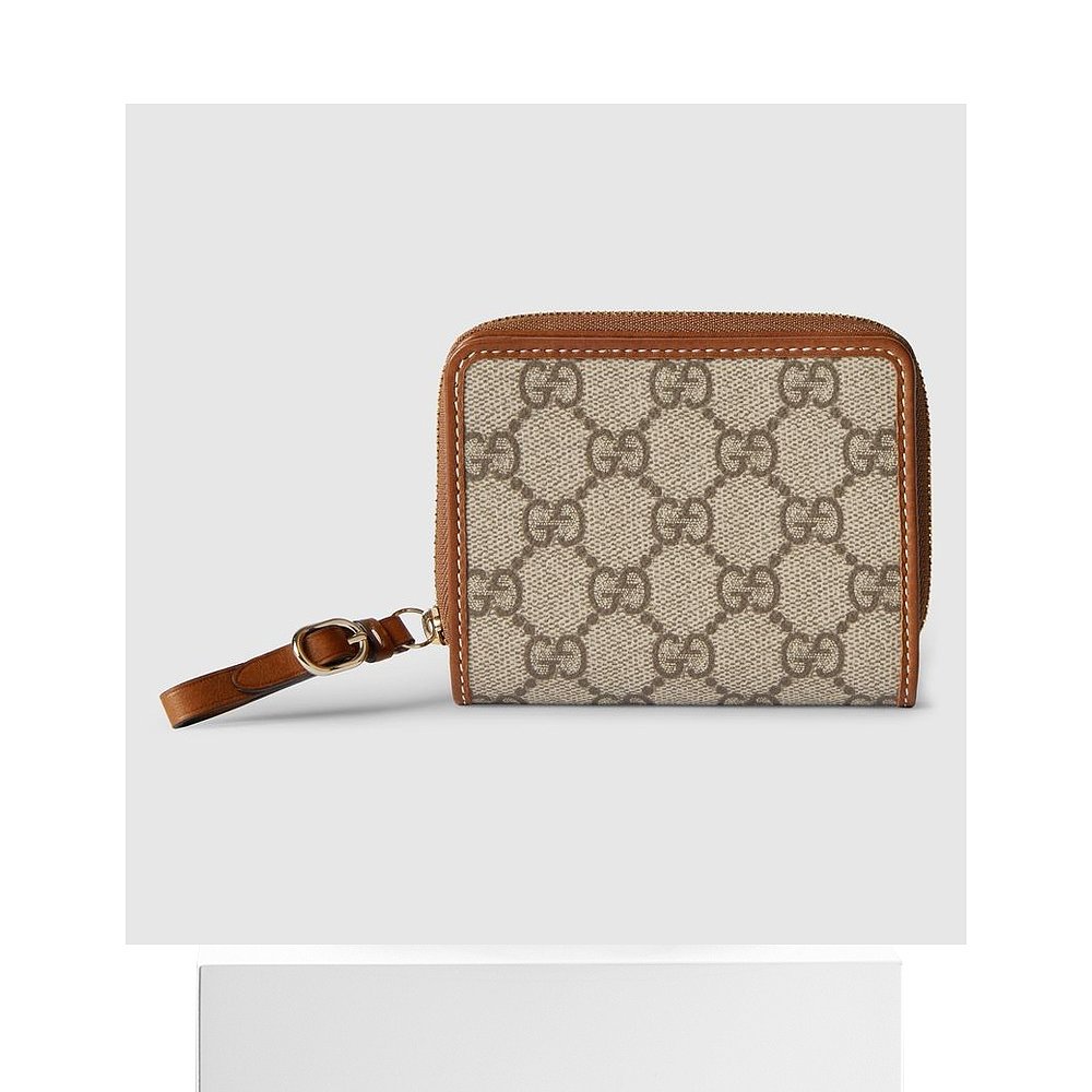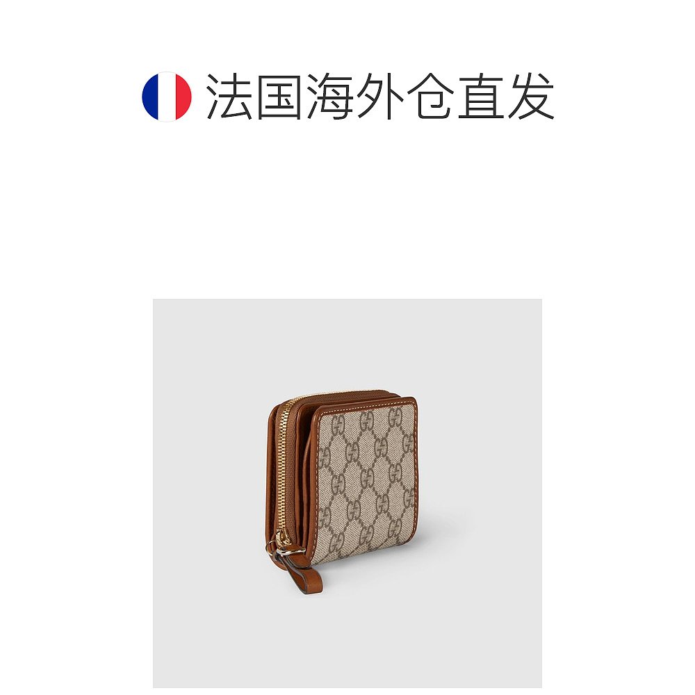 自营欧洲直邮Gucci古驰女士米色和深棕色帆布GG图案迷你拉链钱包