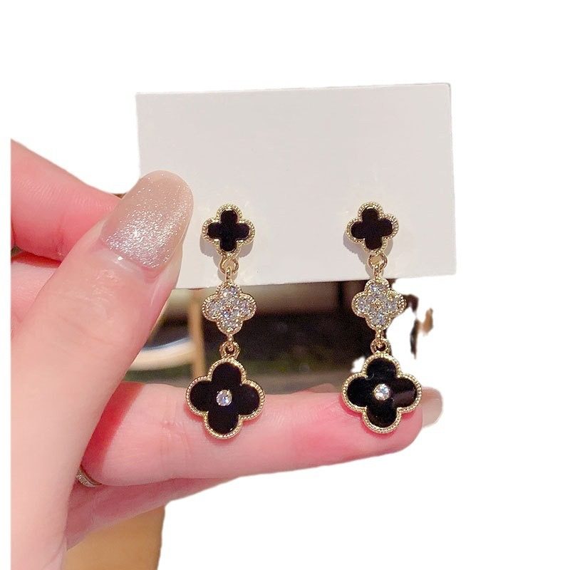 长款四叶草耳环韩国高级感气质超仙网红耳钉女银针耳饰2024年新款