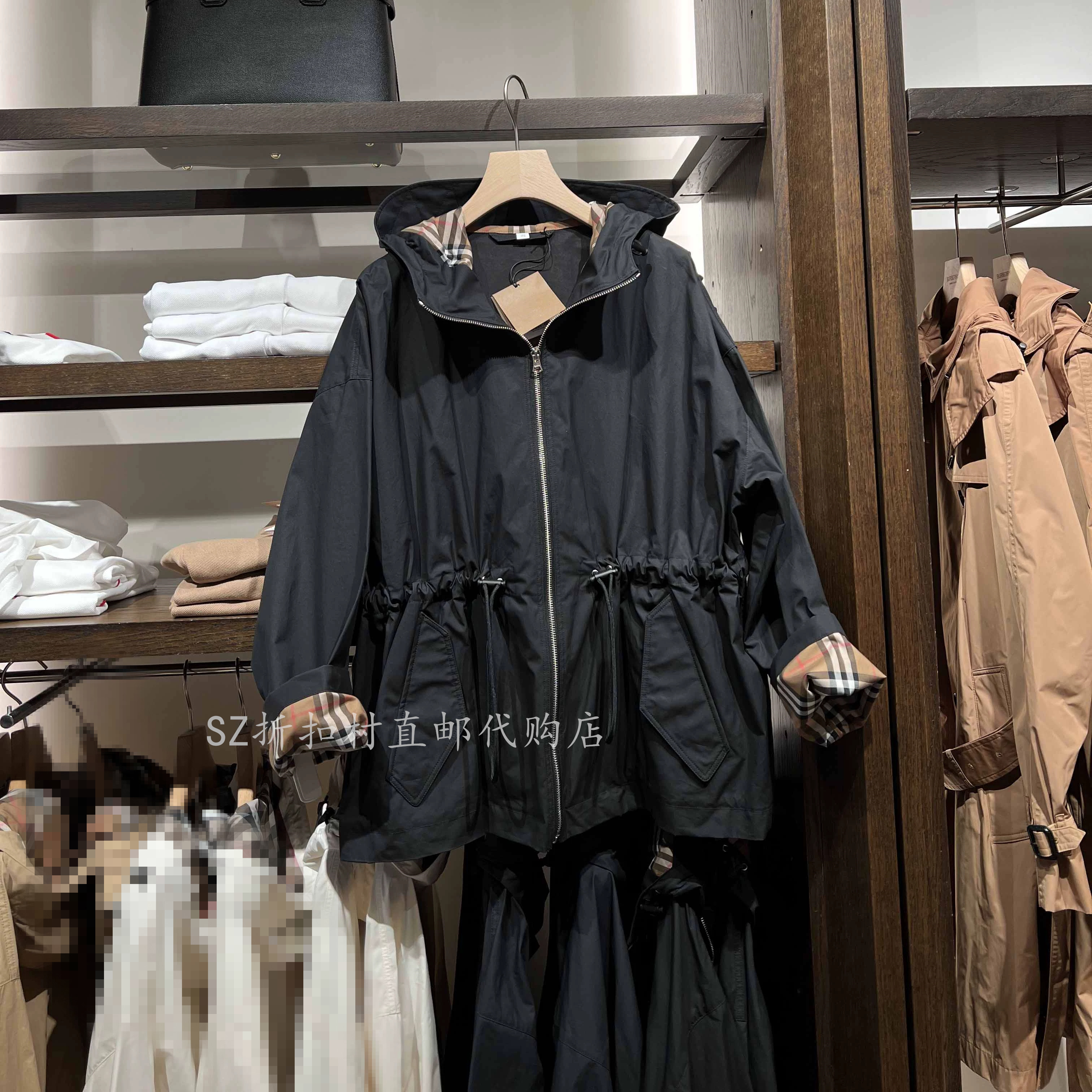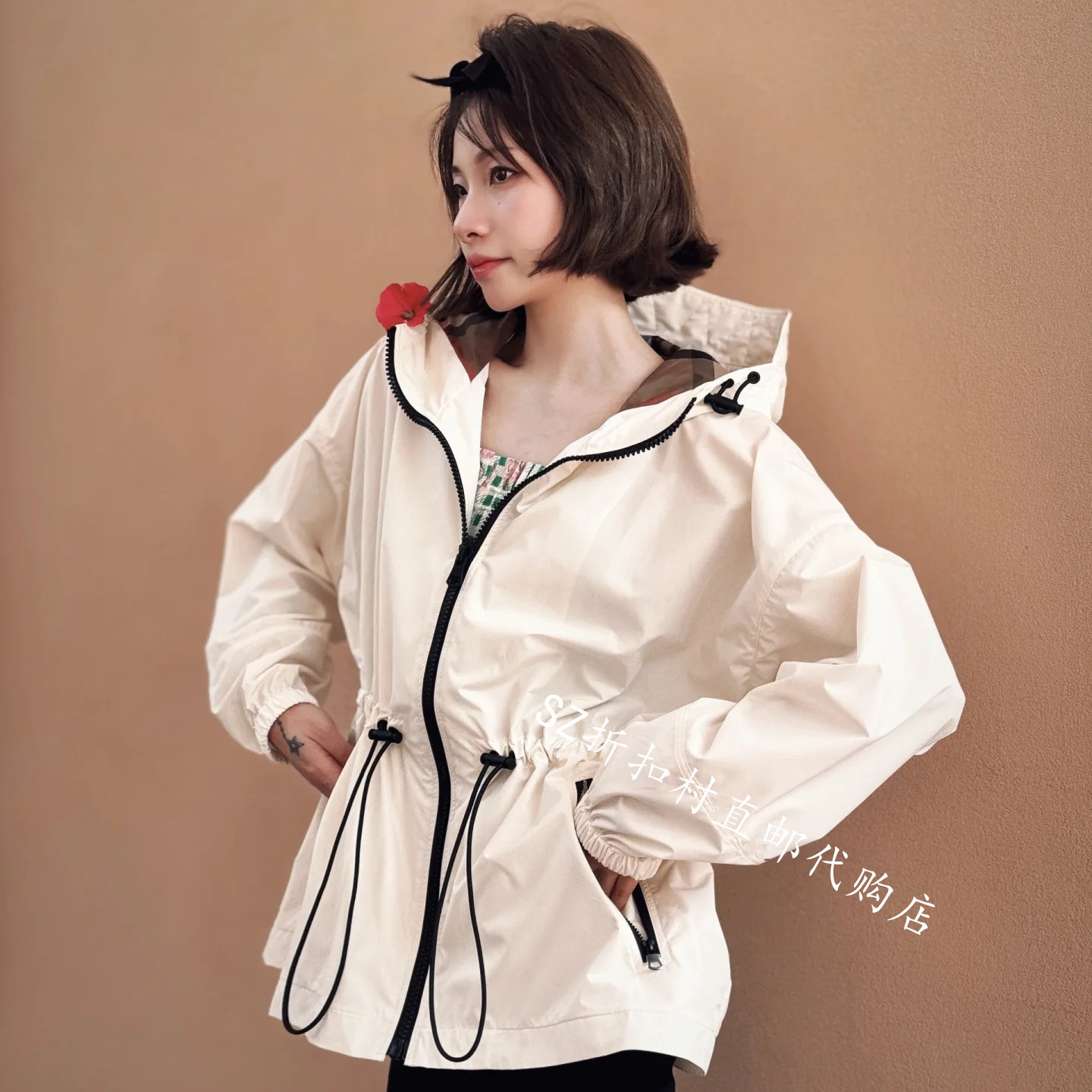 海外折扣店直邮2025春夏秋新款女士短款白色风衣外套黑色夹克连帽