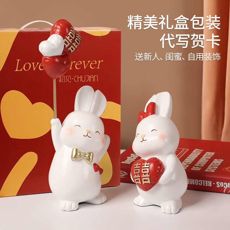 可爱兔子情侣婚房摆件创意客厅家居装饰品新婚结婚礼物送闺蜜新人