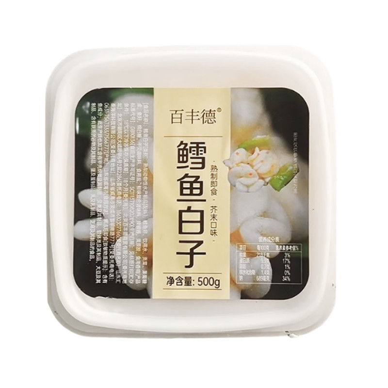 鳕鱼白子500g/盒 芥末藤椒熟制即食白子日式寿司料理刺身烧烤食材