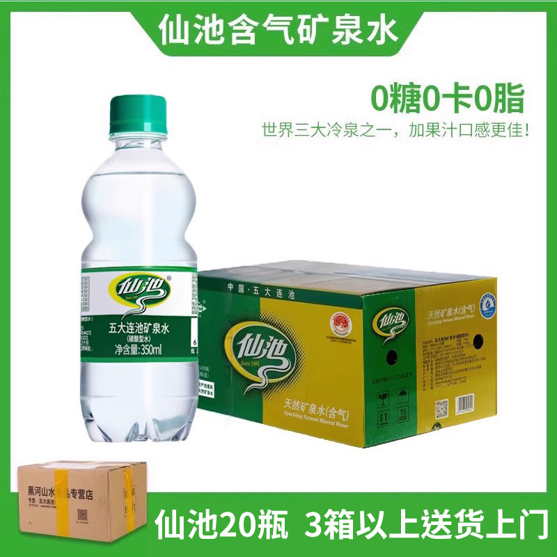五大连池矿泉水天然含气仙池牌饮用水零卡零糖气泡水350ml*24瓶包