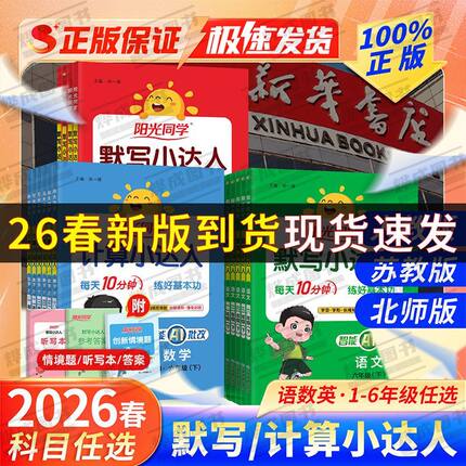 2026春新版阳光同学计算小达人一年级二年级三四五六年级上册下册数学人教版苏教版北师版默写语文英语同步专项训练口算天天练习册