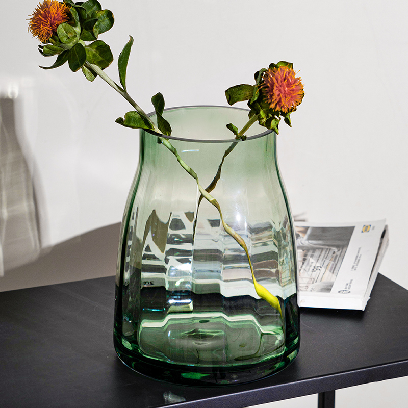 北欧风法式复古简约轻奢条纹餐桌透明水培绿植玻璃花瓶鲜花插花器