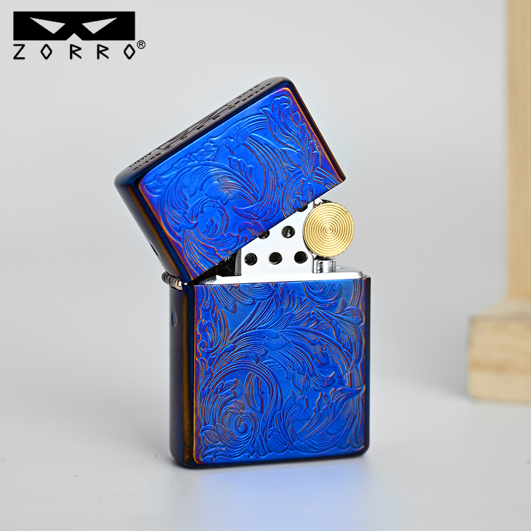 ZORRO佐罗防风煤油打火机限量熏蓝小叶唐草送男士创意节日礼物