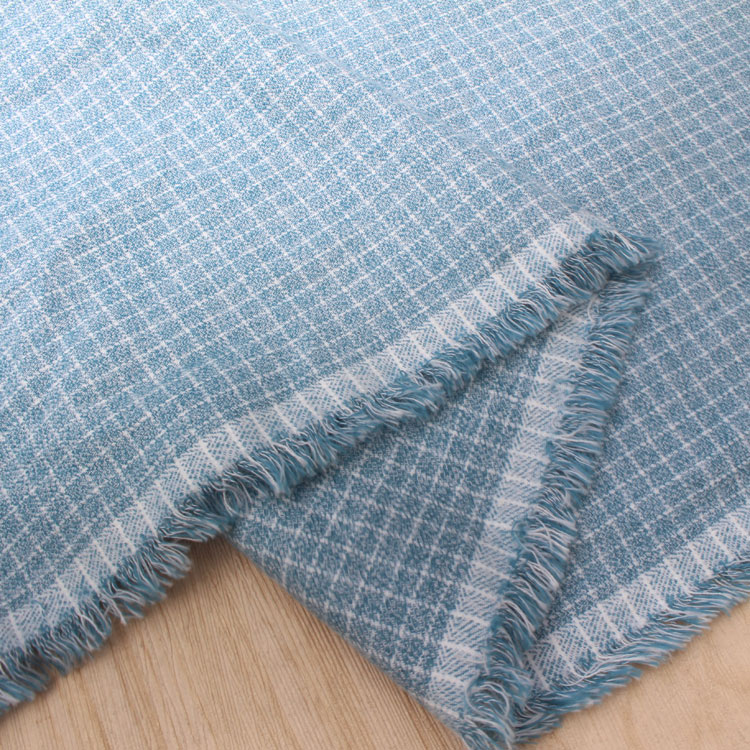 简约浅蓝青色织小格子毛布纯棉布料 秋款服装衬衫上衣长裙Diy面料