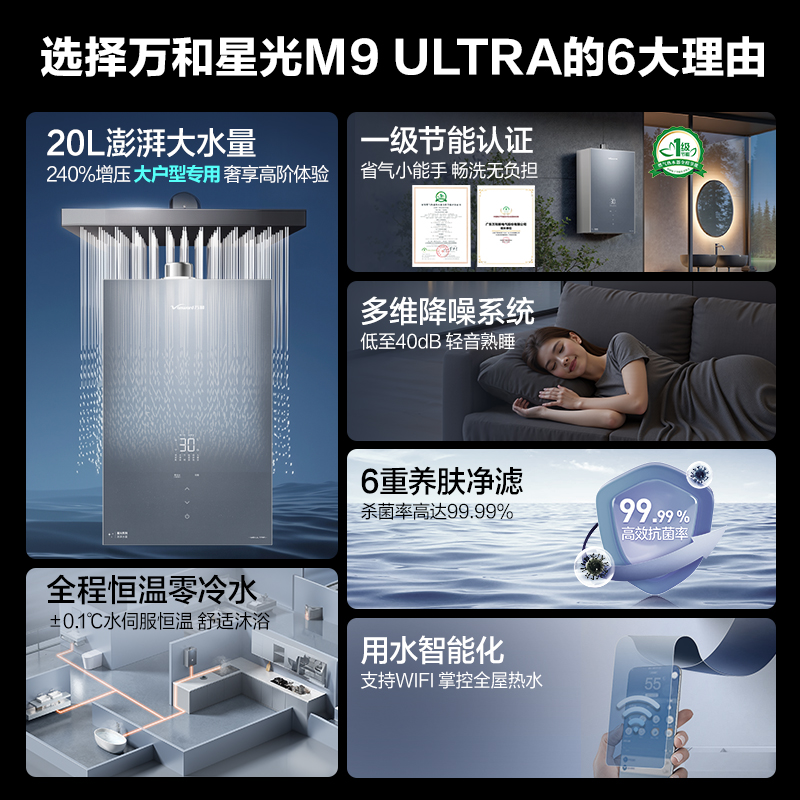 [政府补贴]万和新品零冷水节能恒温天然气燃气热水器星光M9Ultra