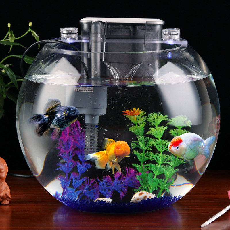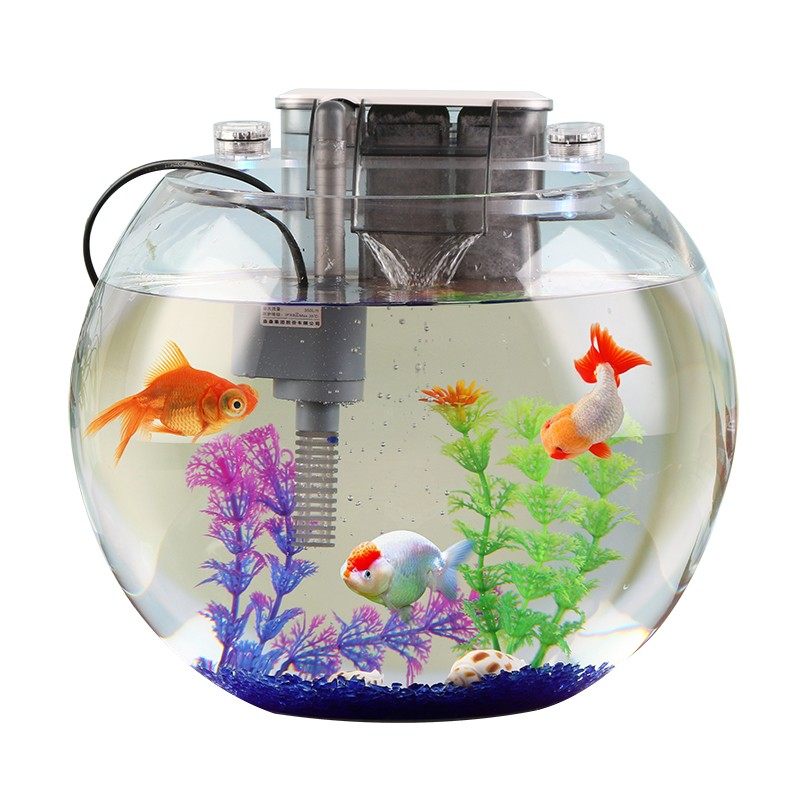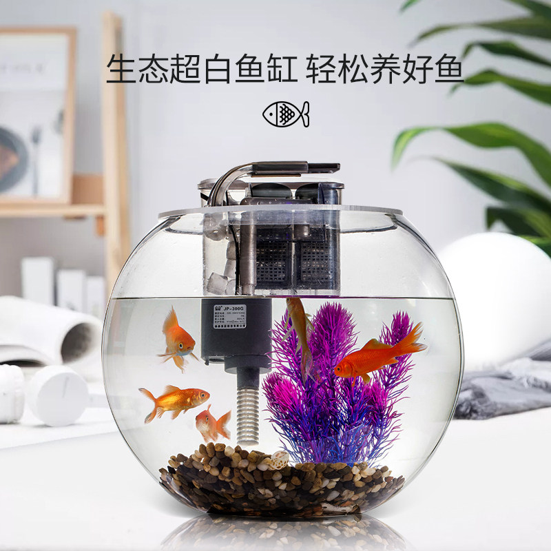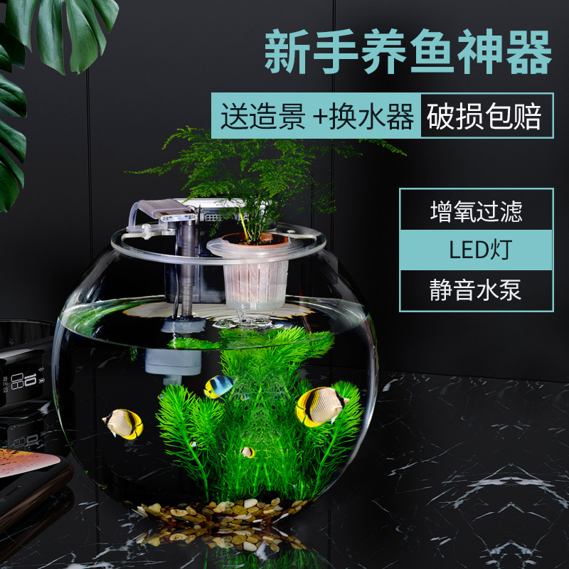 超白玻璃鱼缸客厅桌面家用小型生态免换水懒人圆形金鱼缸增氧过滤