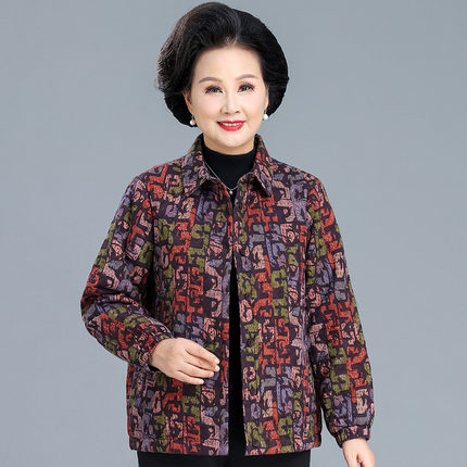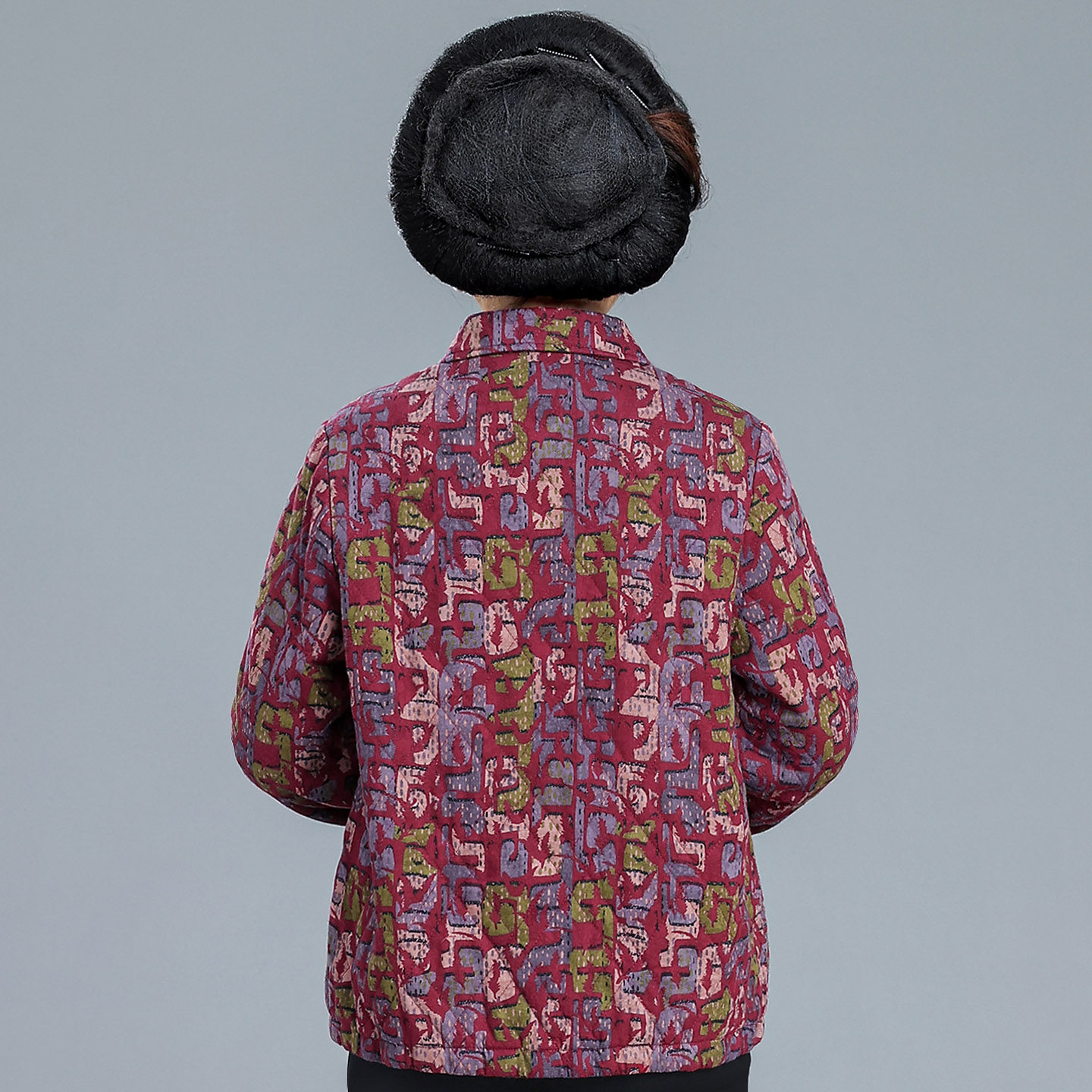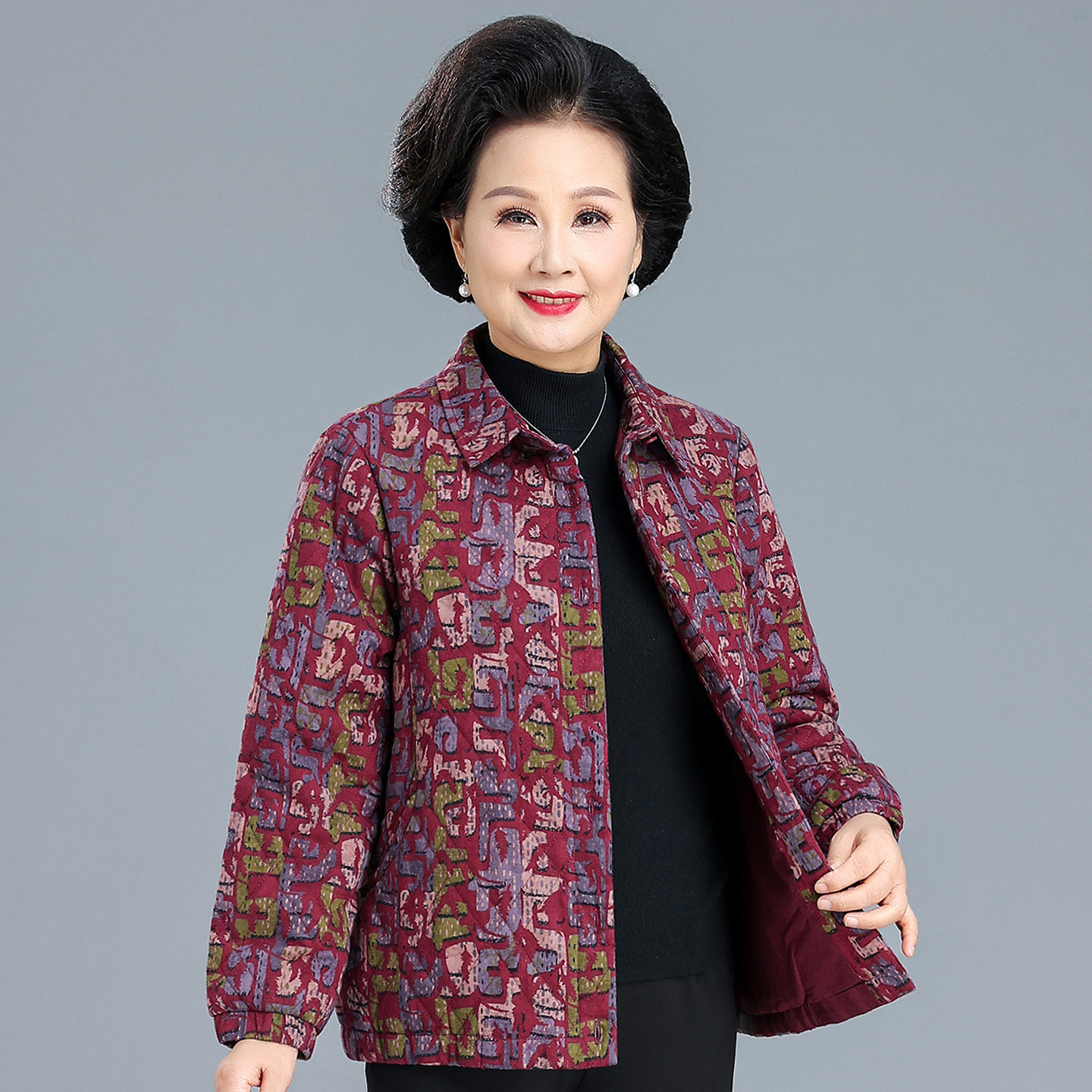 中老年秋冬装女夹棉外套纯棉印花奶奶休闲短款上衣外穿老太太宽松