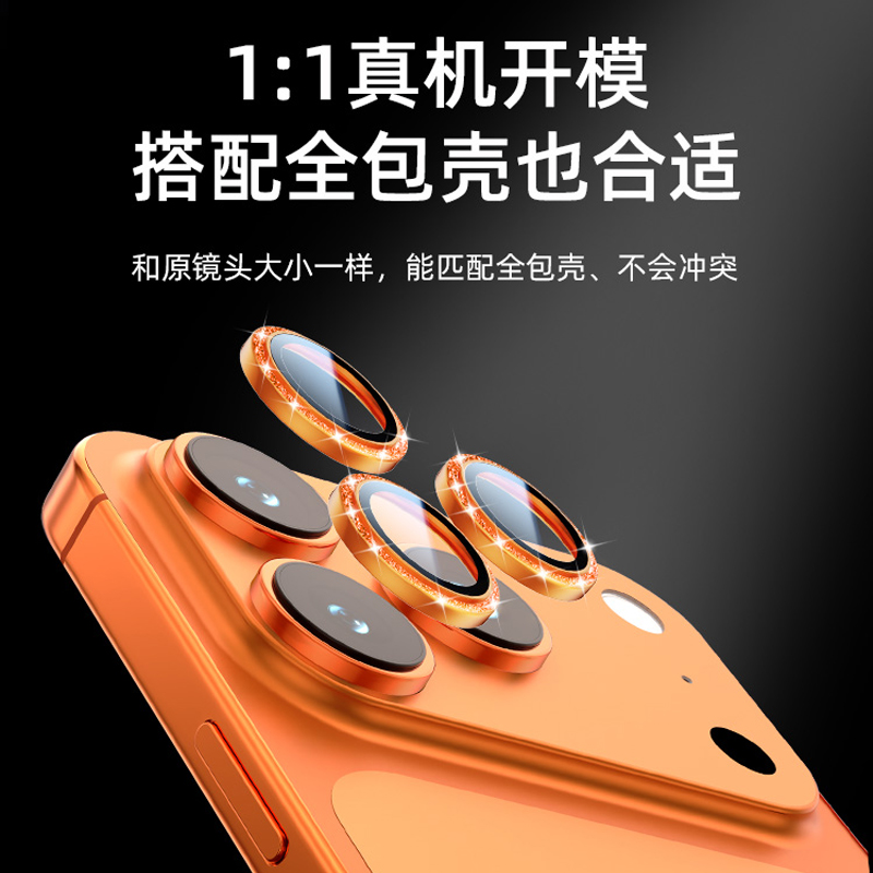 闪耀钻石适用苹果17promax镜头膜iphone16pro康宁玻璃15PM高清防摔plus保护膜air后置摄像头全包保护圈盖框