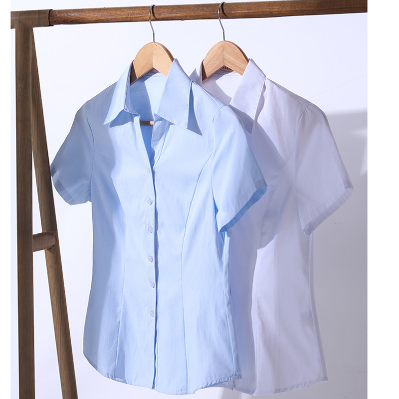 白色衬衫女短袖新款职业装蓝衬衣