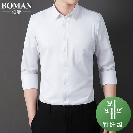 竹纤维男士长袖白色弹力衬衫职业商务休闲工装打底短袖蓝黑衬衣寸