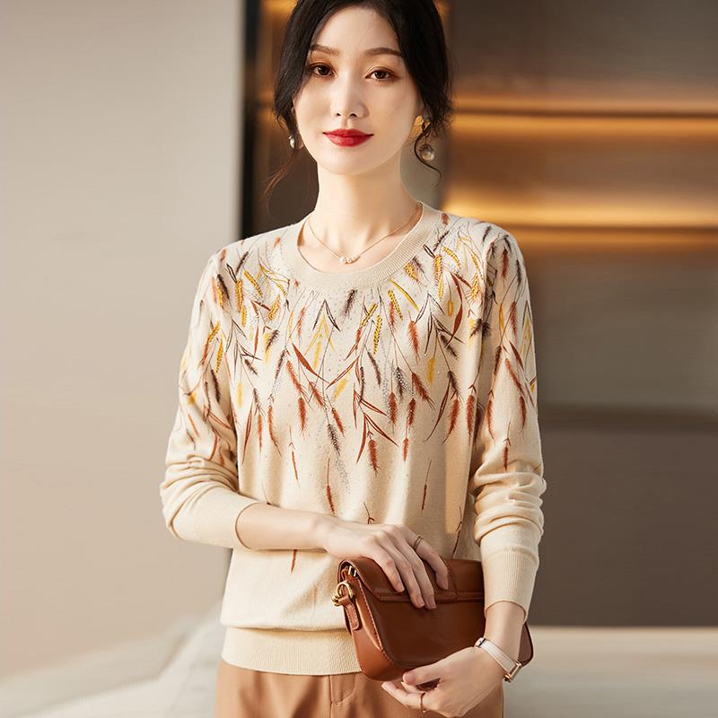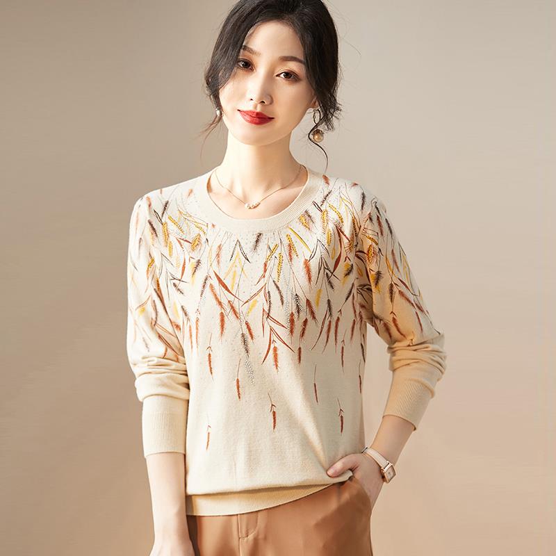 中年妈妈春装长袖针织小衫宽松上衣40岁中老年女装洋气毛衣打底衫