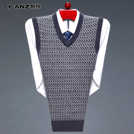 利郎羊绒衫背心男士商务休闲时尚针织马甲V领百搭羊毛衫大码坎肩