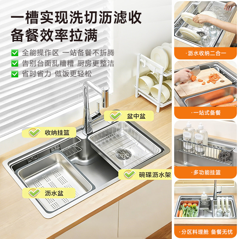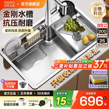 日丰金刚水槽日式大单槽加厚304不锈钢台下洗碗槽厨房集渣洗菜盆