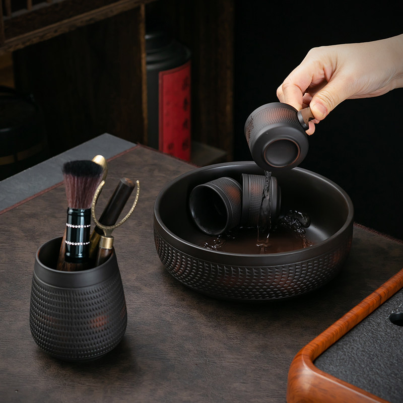 紫陶跳刀茶洗大号家用洗茶碗笔洗茶渣缸杯洗水盂功夫茶具茶道零配