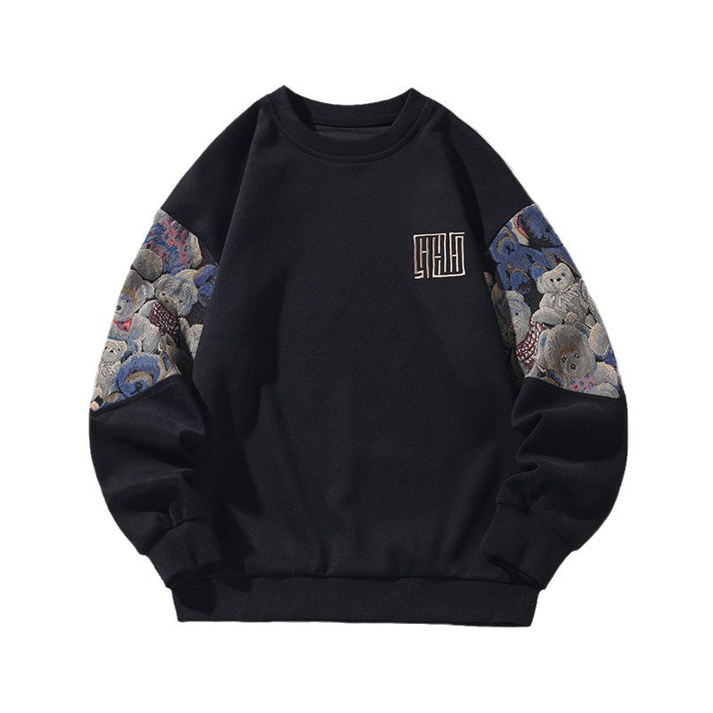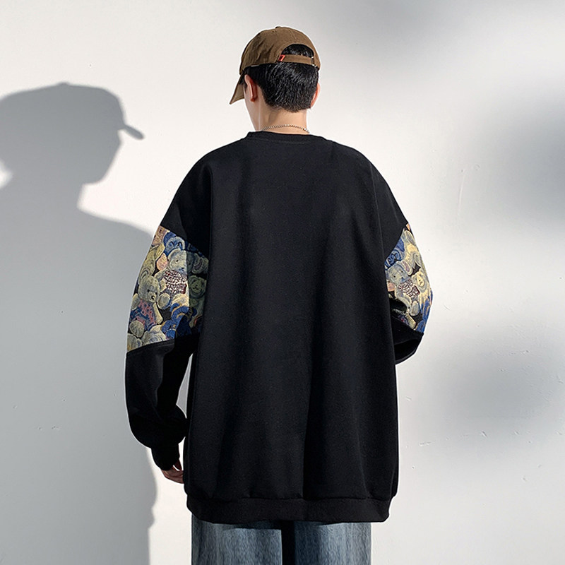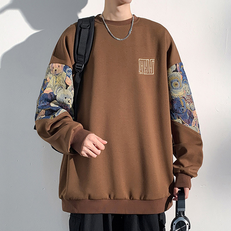 大码胖子卫衣男士春秋款新中式外套加肥加大无帽圆领内搭休闲上衣