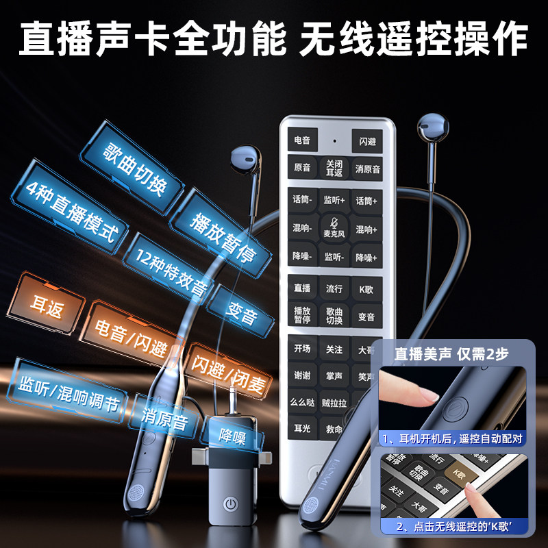 无线直播耳机手机声卡主播唱歌专用设备全套户外降噪麦克风二合一