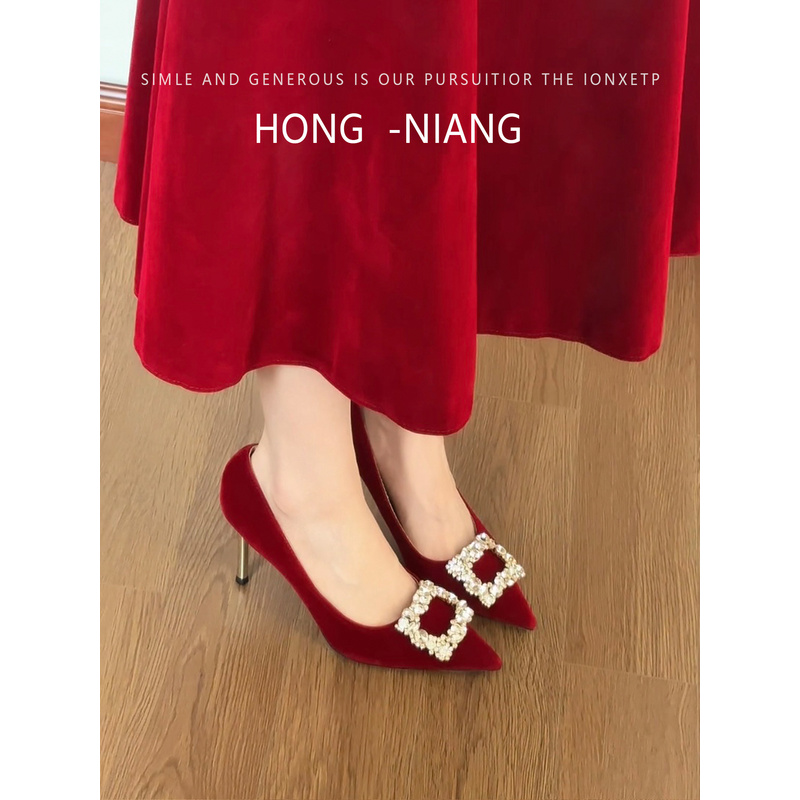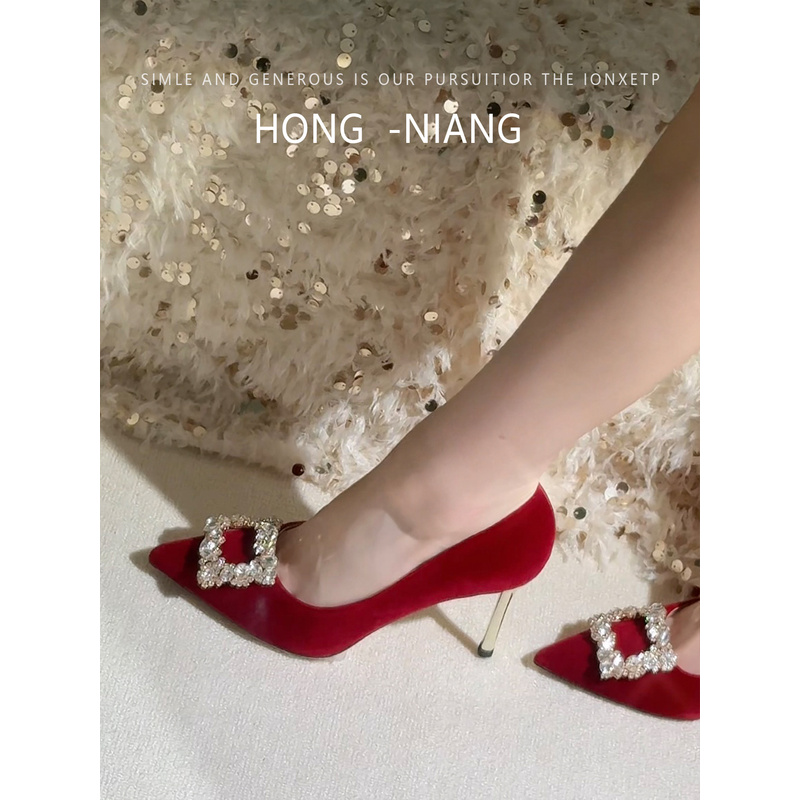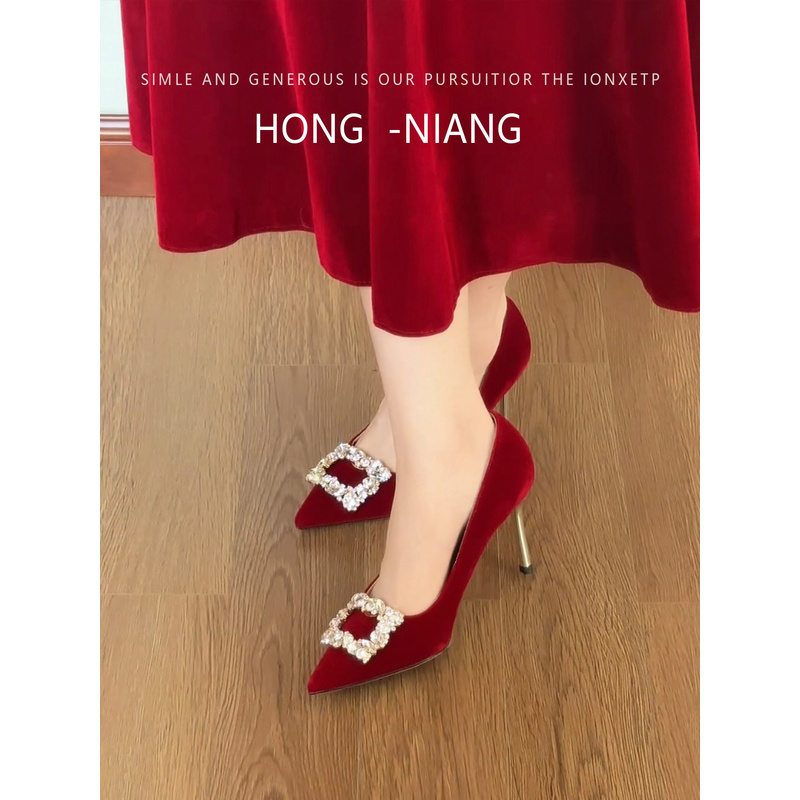 红色高跟鞋女2025新款秀禾敬酒服两穿不累脚婚鞋订婚结婚敬酒鞋