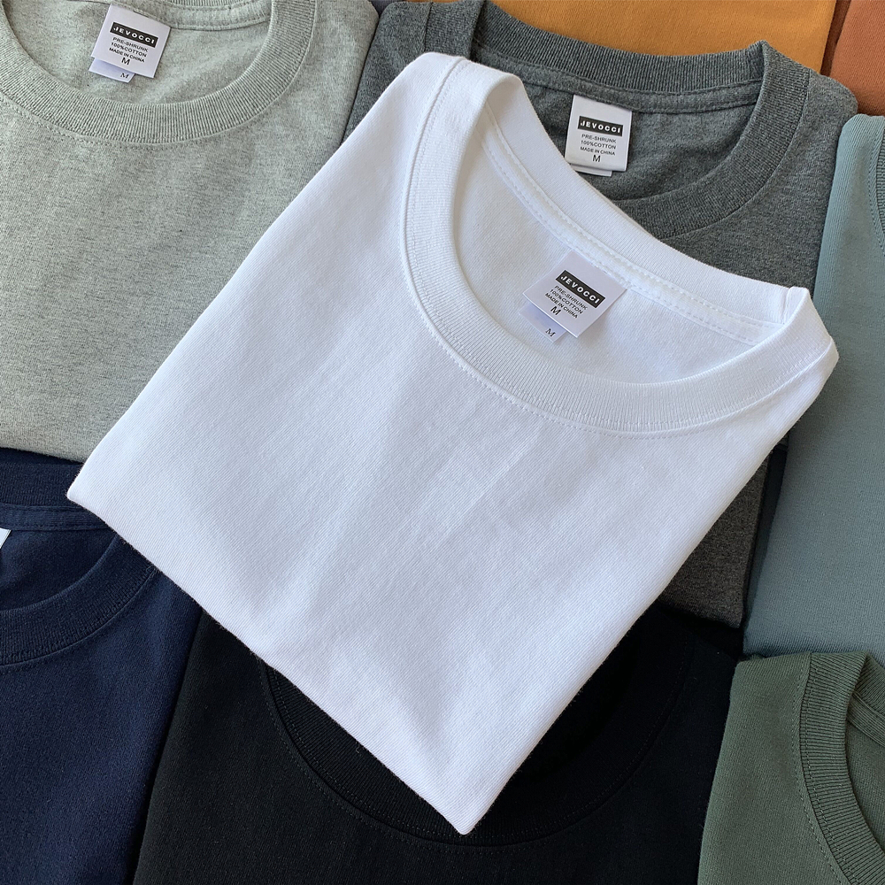 JEVOCCI春夏打底衫270g重磅纯棉百搭男女纯色圆领厚实不透长袖T恤