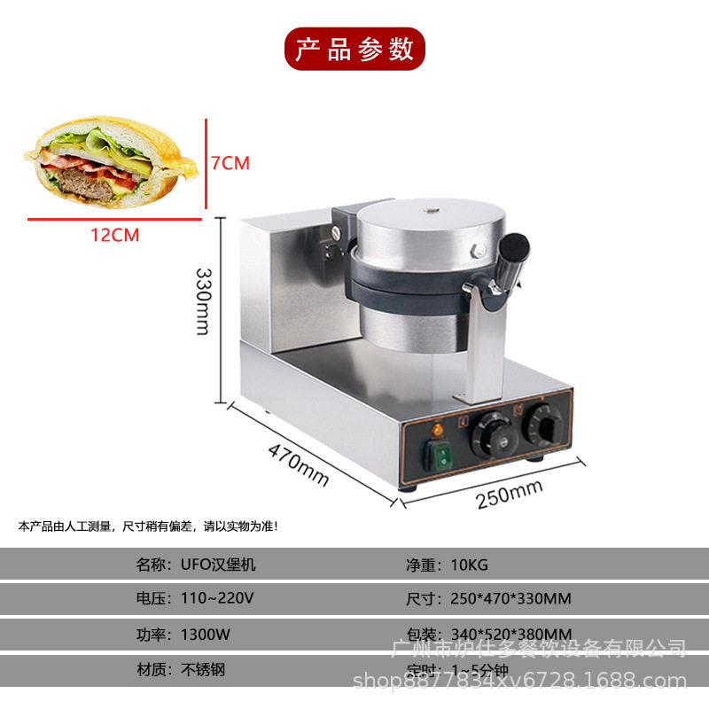 跨境商用冰淇淋汉堡机雪糕夹馅飞碟汉堡J机单头旋转UFO汉堡华夫炉