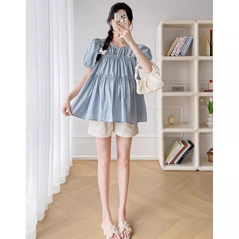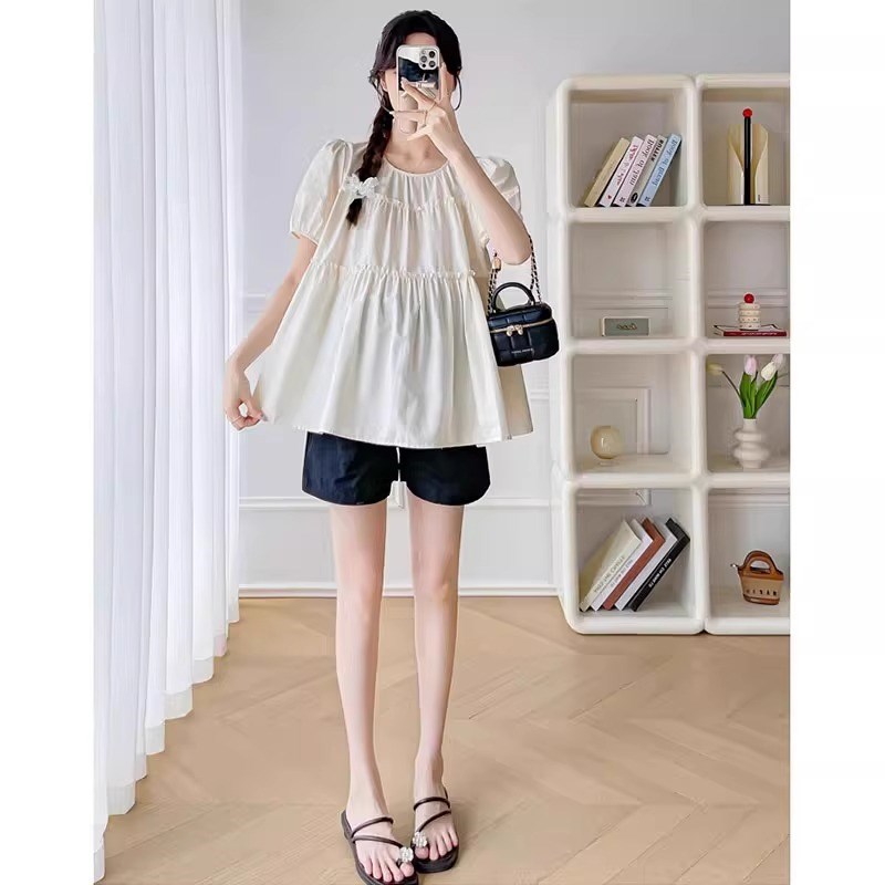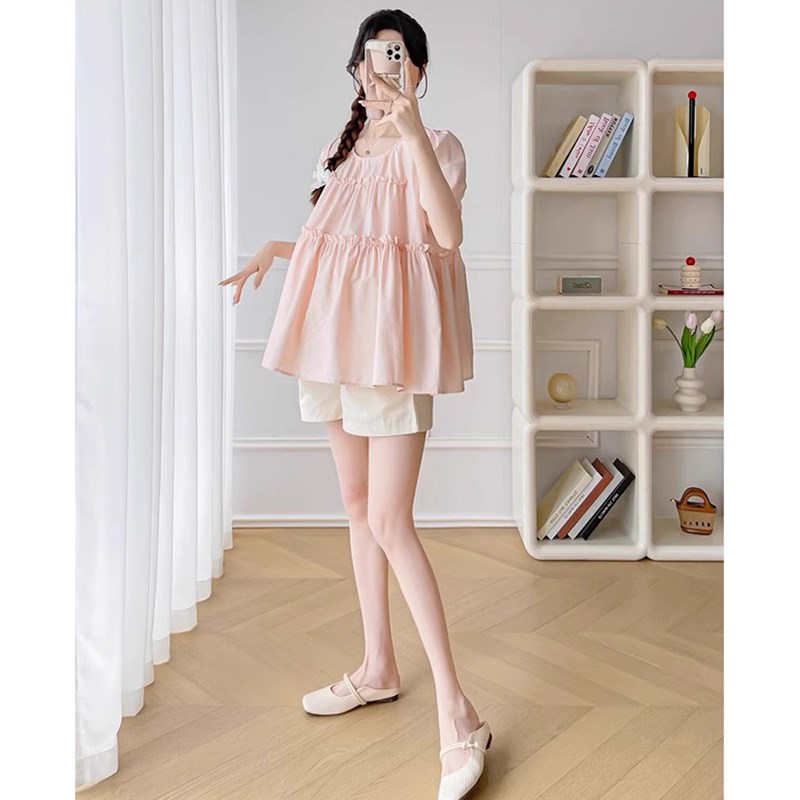 孕妇套装夏季2025新款时尚宽松甜美娃娃衫N薄款短袖上衣短裤两件