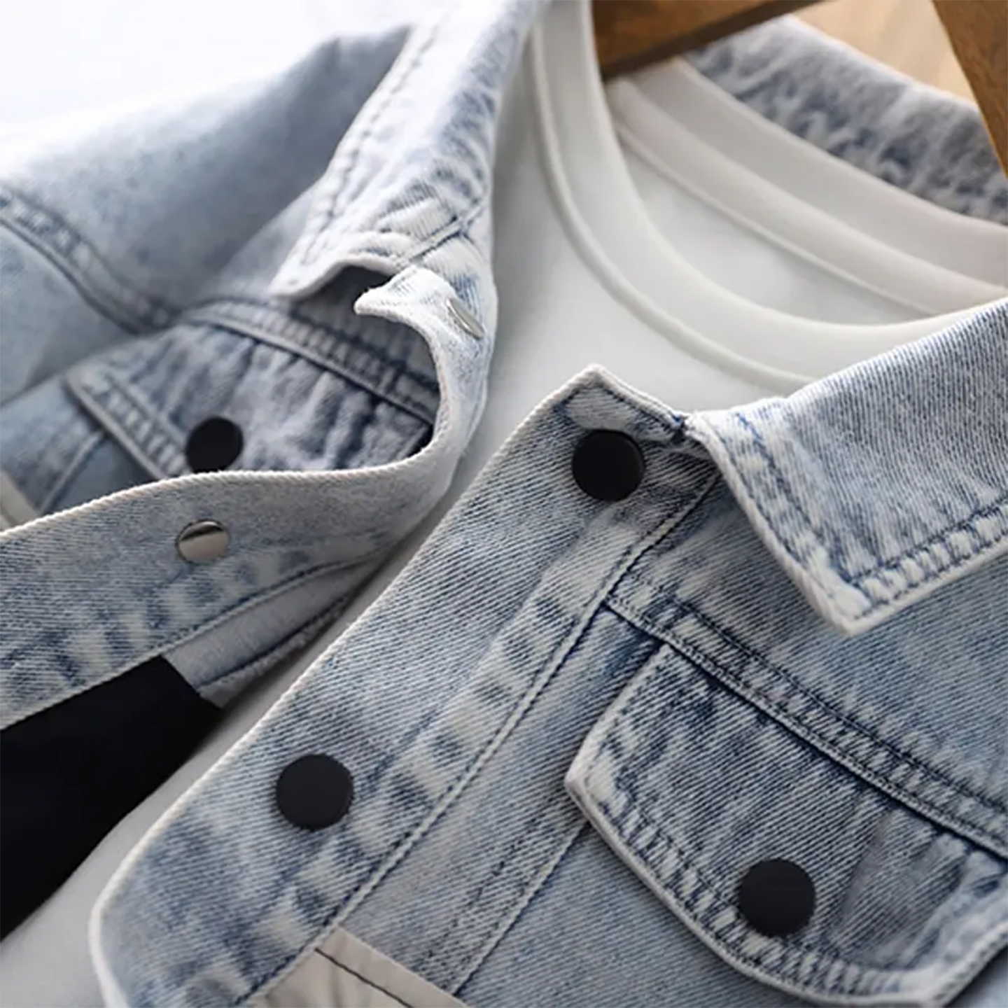 男童秋装牛仔外套2025新款儿童帅气撞色拼接翻领夹克大童休闲上衣