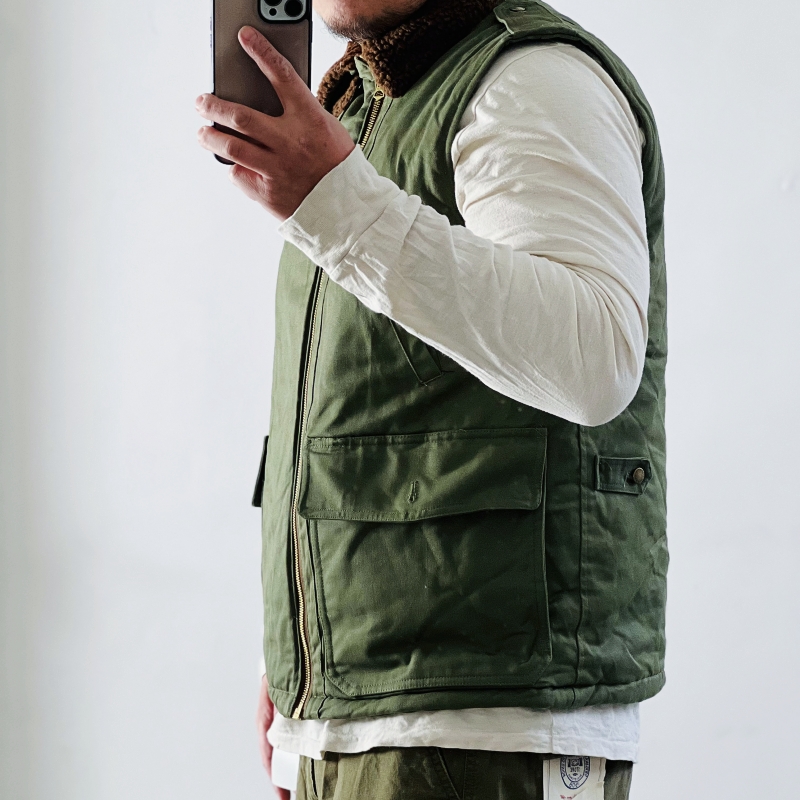 vintage二战军风夹棉马甲