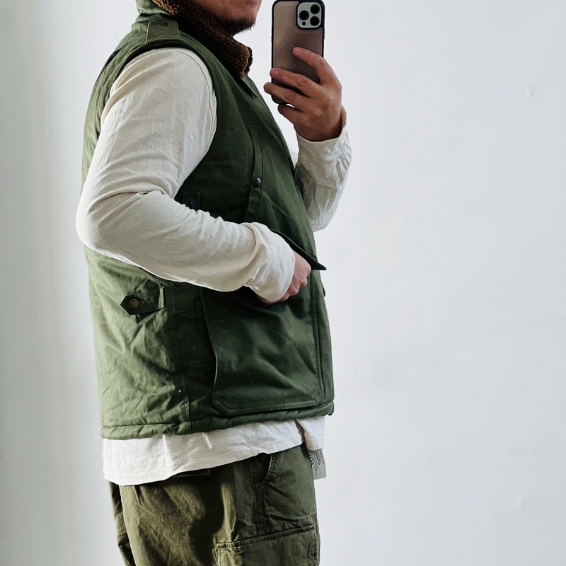 原装双RL vintage复古二战军风船员甲板夹棉马甲背心重磅旧布合身