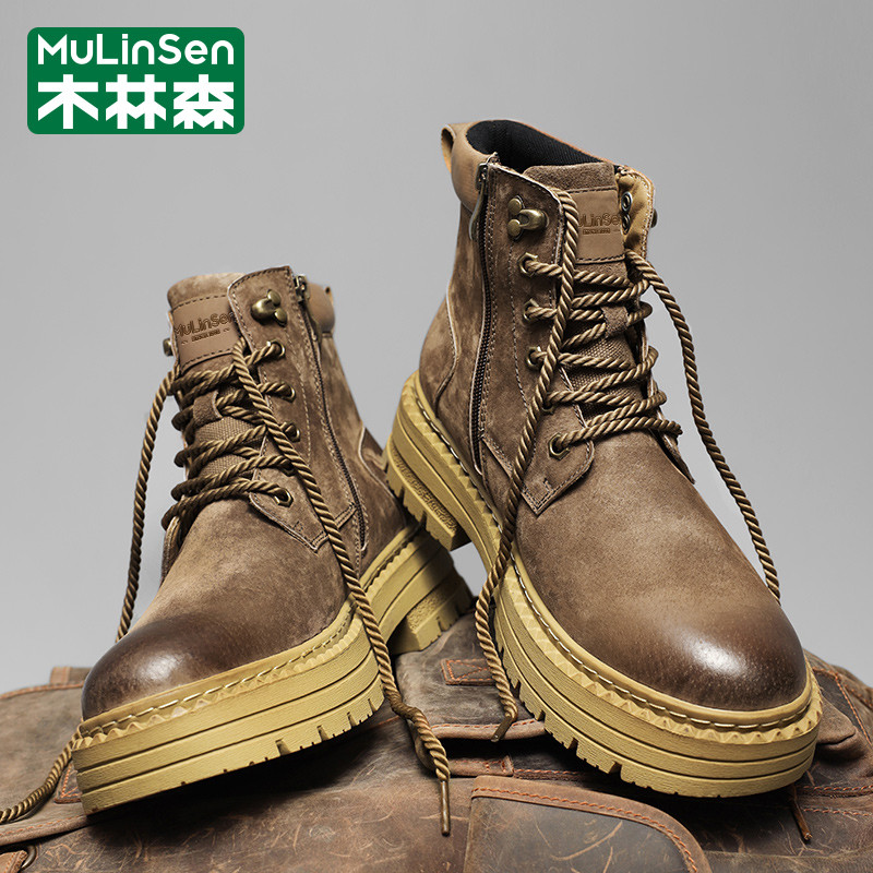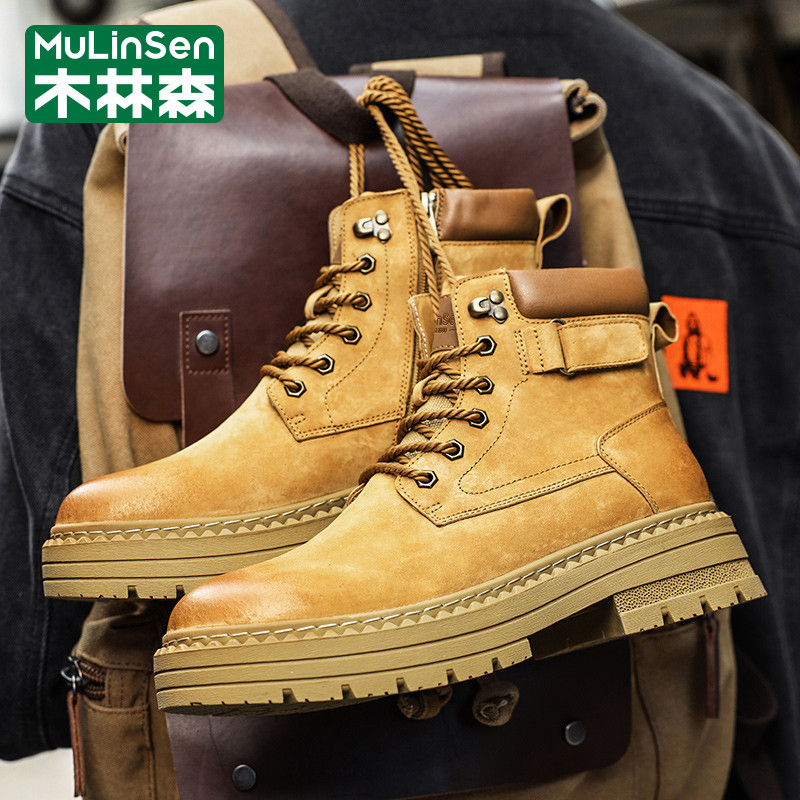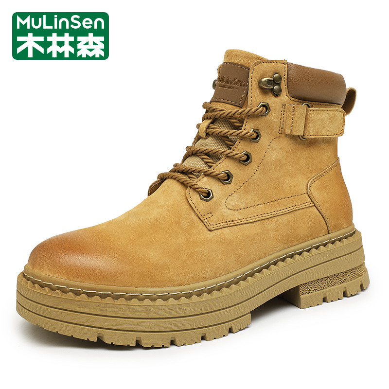 木林森马丁靴男款冬季运动休闲英伦高帮工装沙漠军战大黄皮鞋短靴