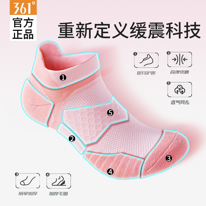 361正品女袜秋冬新款专业运动短筒袜毛巾底透气吸汗女士跑步袜子
