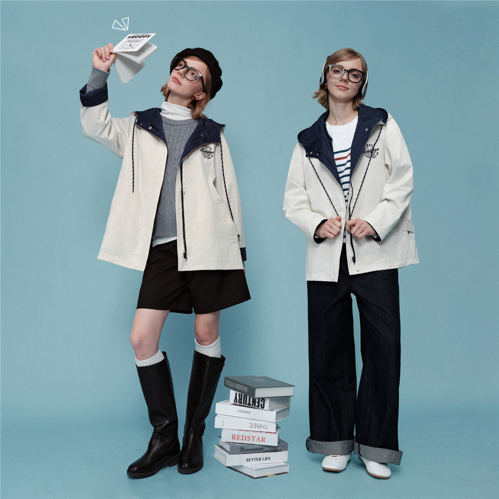 [史努比联名]佐丹奴夹克女刺绣纯棉宽松廓形连帽风衣外套18375706