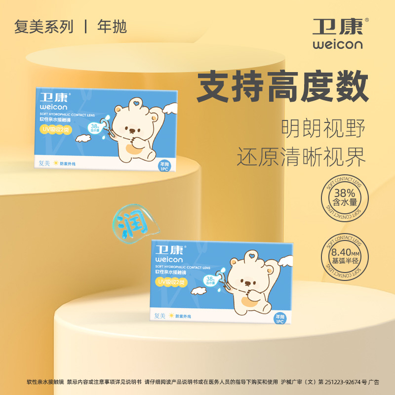 卫康隐形眼镜复美年抛1片/2片装近视片一次性透明片官方旗舰正品