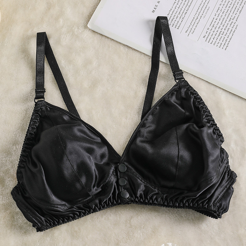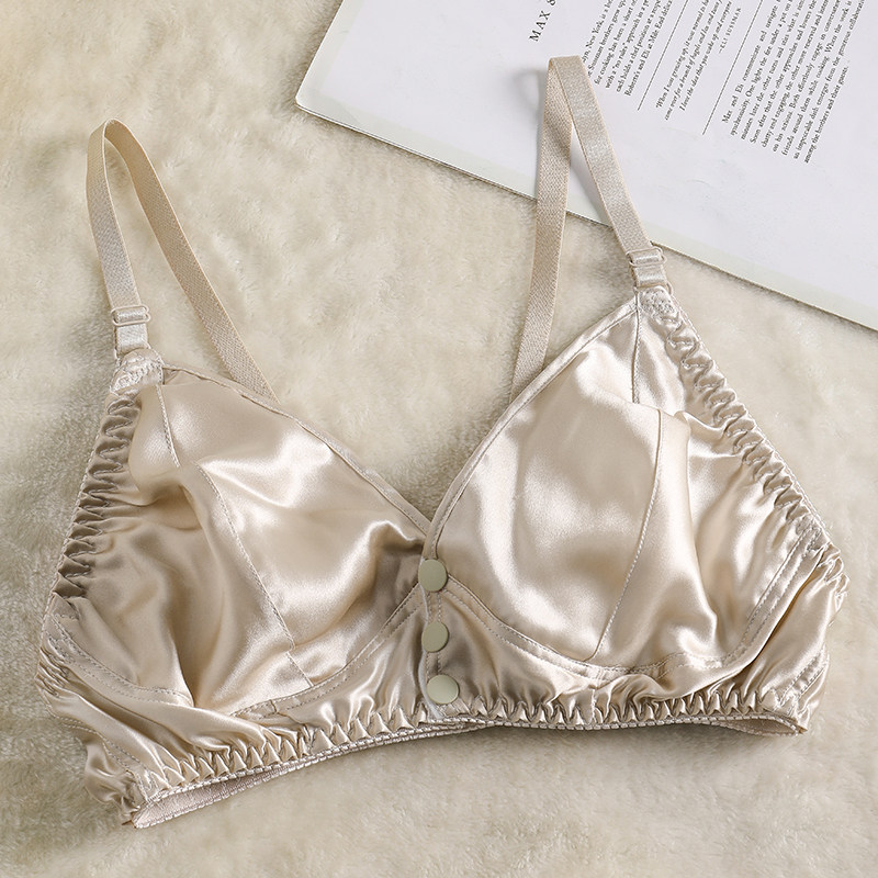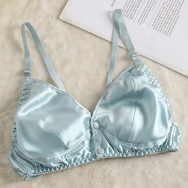 真丝文胸前扣兔耳朵防凸点无痕内衣女双面桑蚕丝的大码乳罩无钢圈