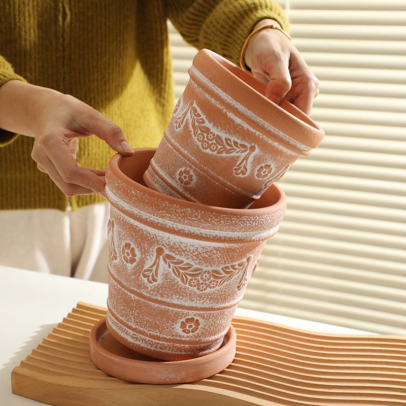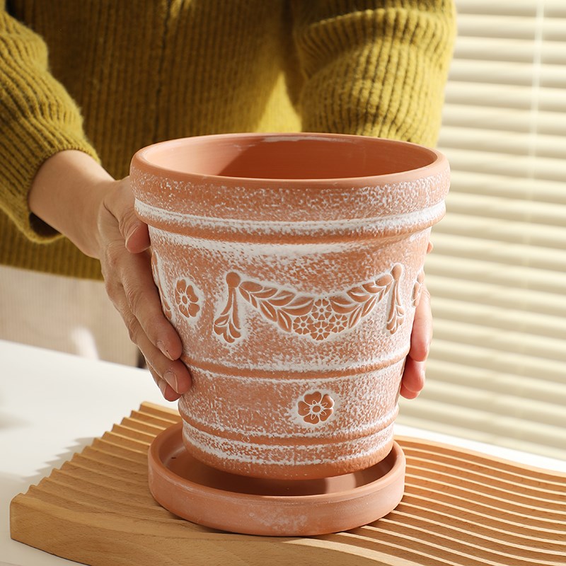 欧美复古粗陶红陶做旧花盆透气泥瓦盆多肉蝴蝶兰植物盆栽大口径