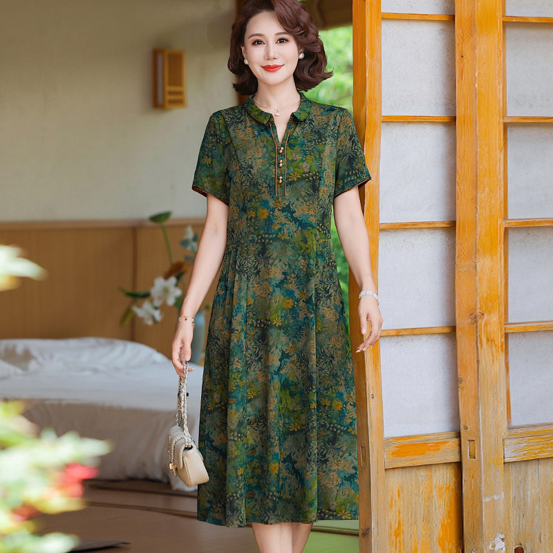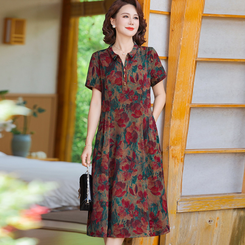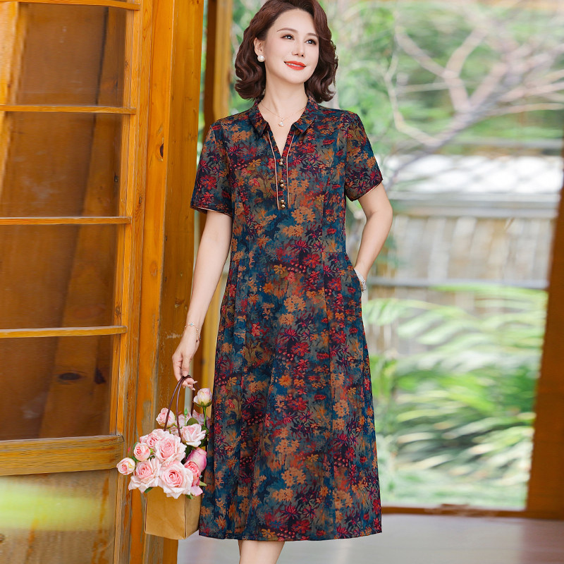 新款夏季连衣裙女妈妈装短袖裙子中老年薄款减龄显瘦中长款花裙子