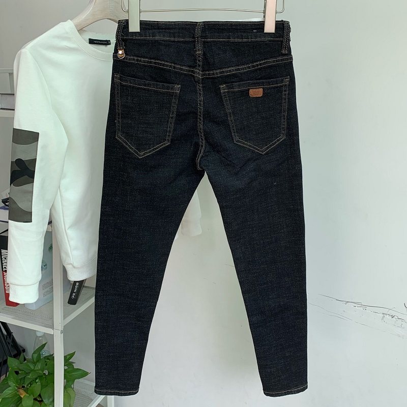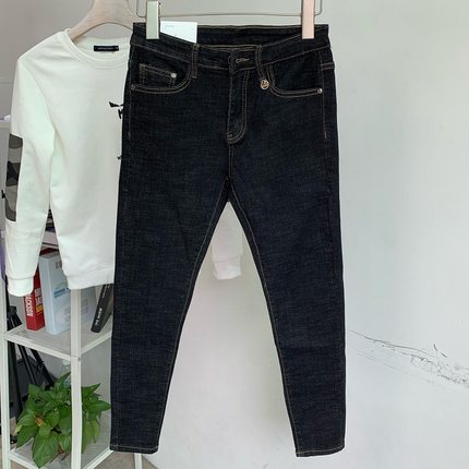 男士牛仔裤夏季潮流韩版修身小脚黑色复古简约休闲青年弹力九分裤