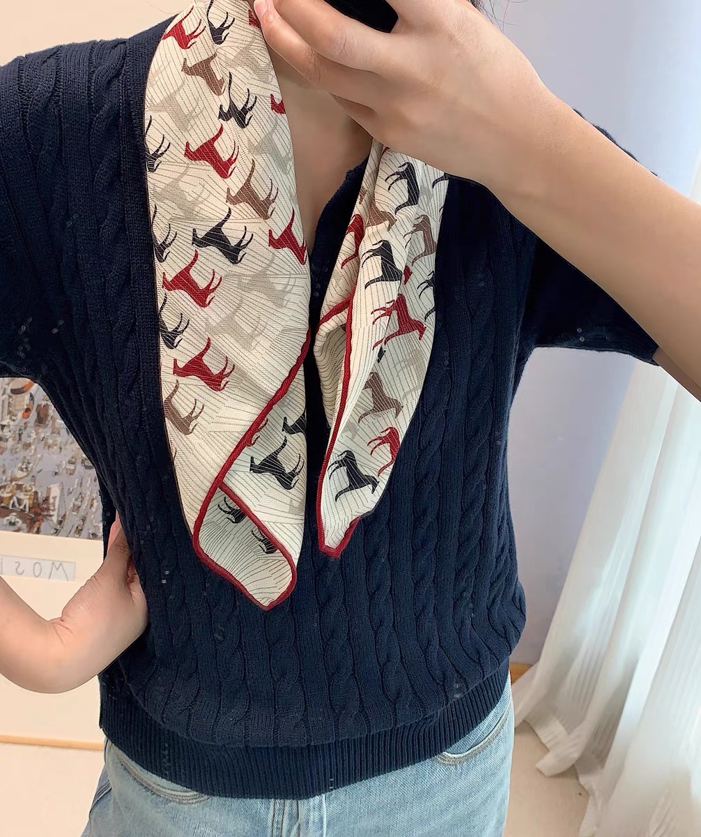 福利 小马列队红 自留超好搭30%真丝70%绵羊毛围巾女63CM方巾