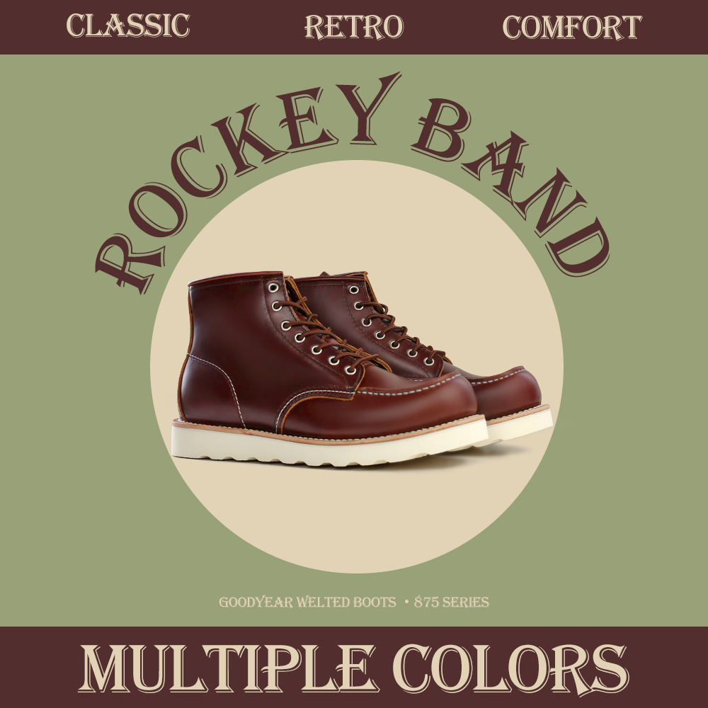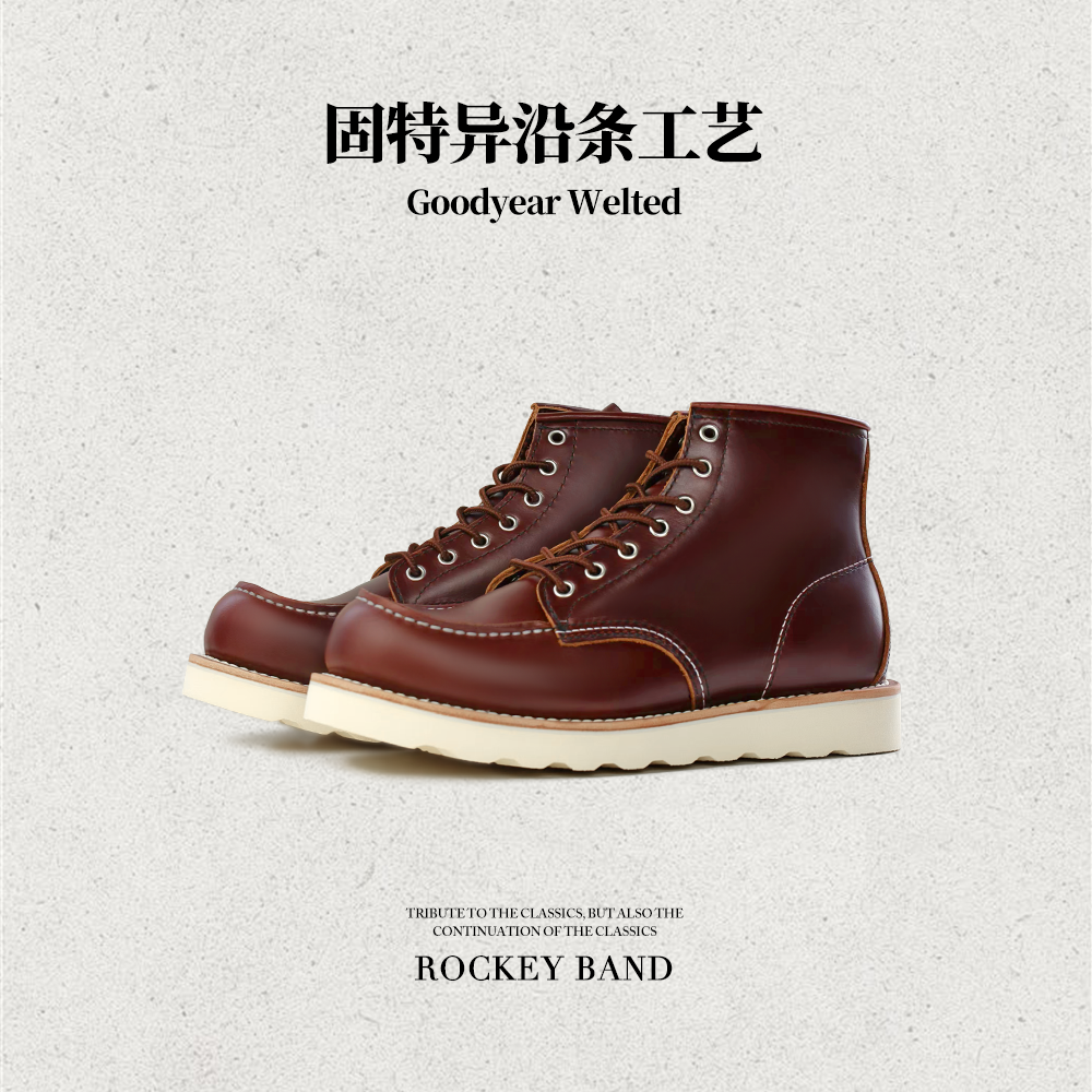 ROCKEY BAND升级高配875工装靴头层牛皮固特异工艺男女复古马丁靴