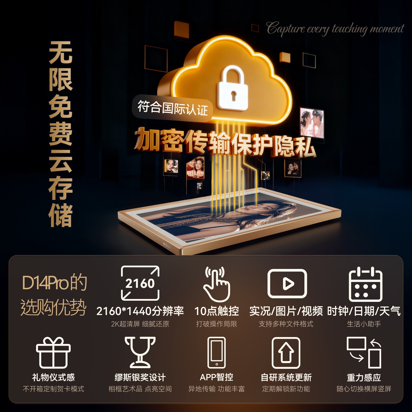 ARZOPA阿卓帕14英寸电子相册2K超高清智能数码云相框显示器触摸画屏播放器照片视频横竖摆台壁挂结婚节日礼物