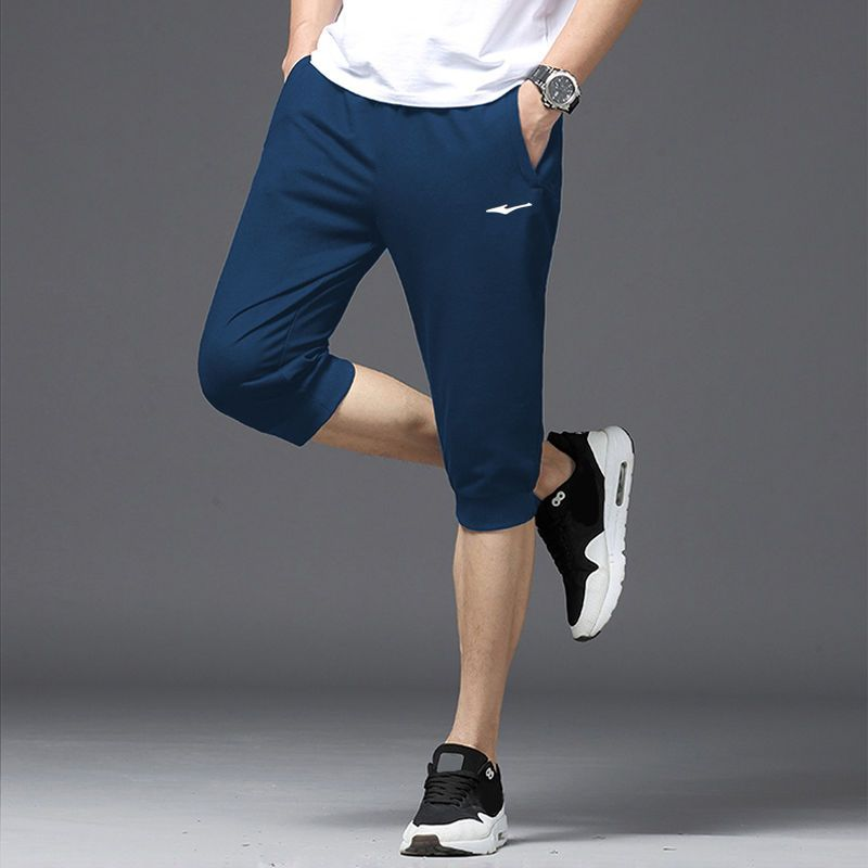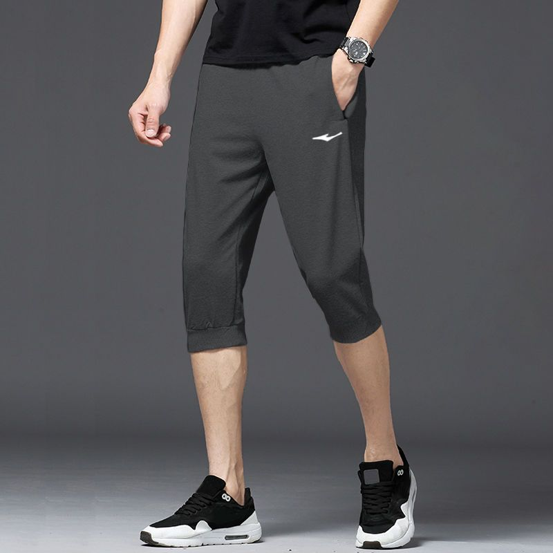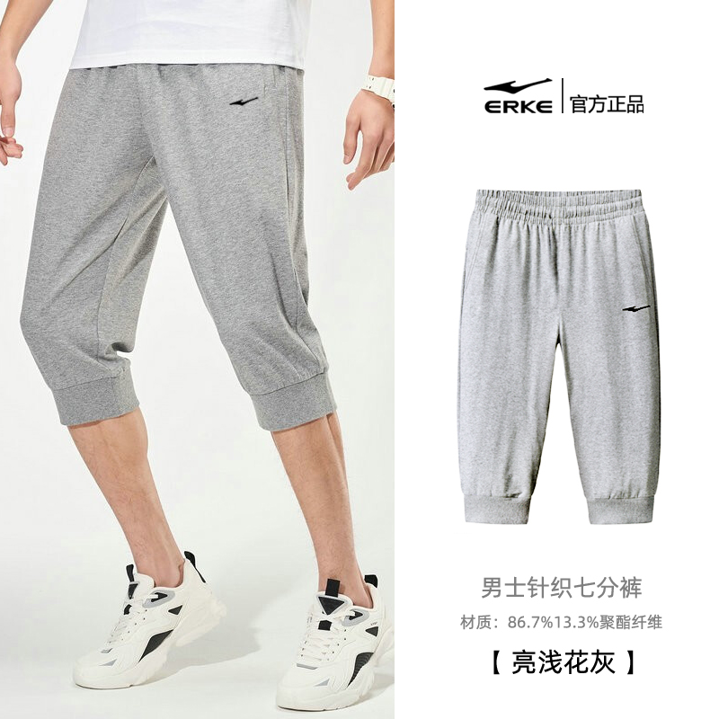 鸿星尔克七分裤男灰色运动裤短裤2025夏季新款束脚针织透气男裤子