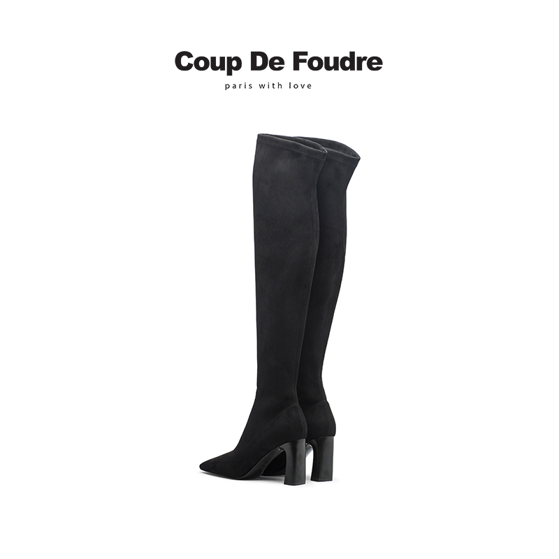 CDF女鞋秋冬季经典时尚百搭过膝靴简约方头粗跟长筒靴弹力靴女