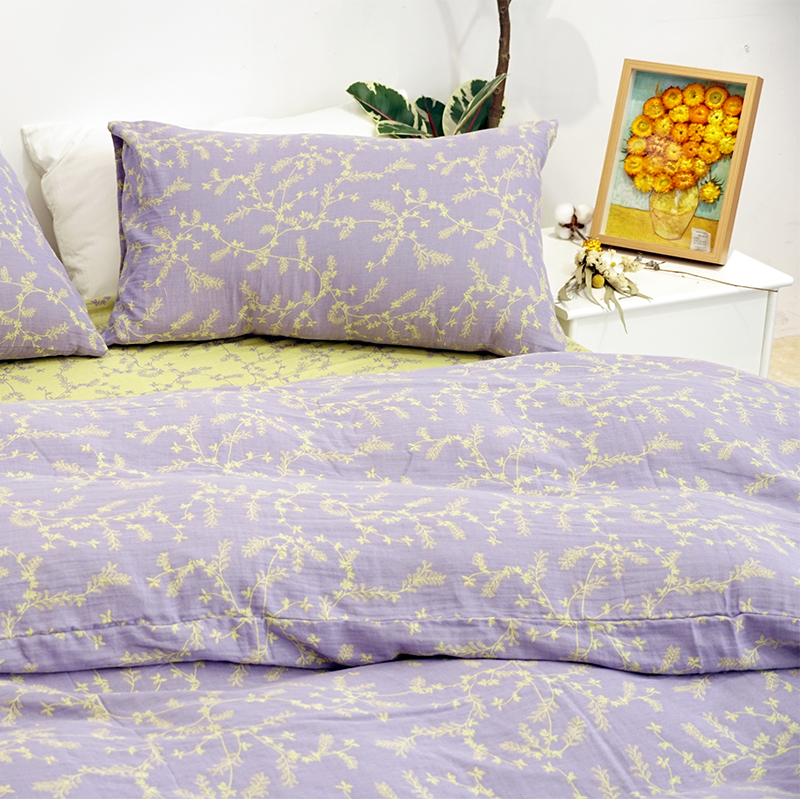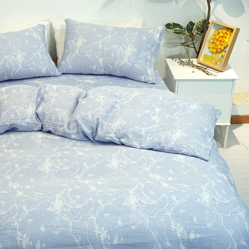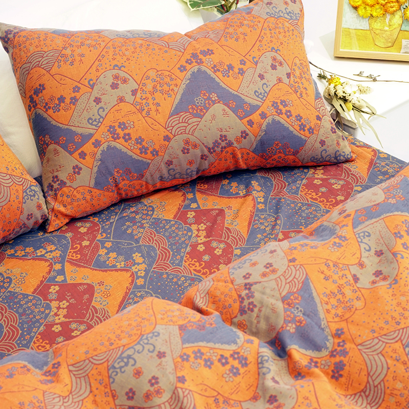 羽亲色织水洗提花纯棉床单被套床上用品40支双层纱四件套