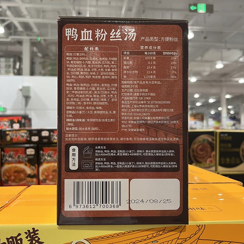 Costco开市客秒宴南京鸭血粉丝汤方便粉丝地道金陵小吃262克*5份