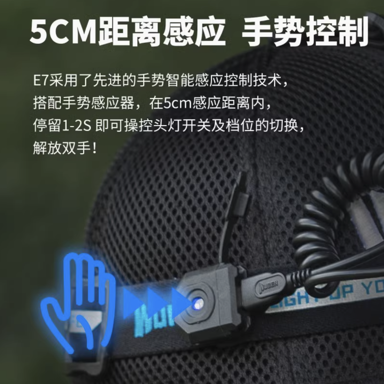 务本E7高配版感应头灯手电两用户外防水徒步露营夜跑骑行钓鱼装备