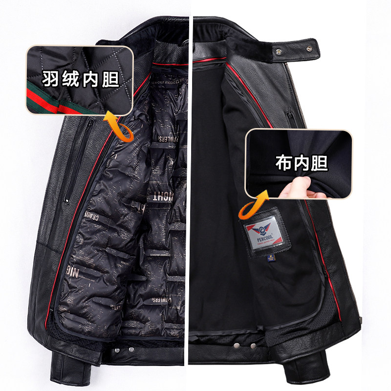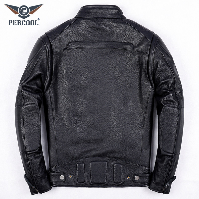 PERCOOL牛皮机车服秋冬真皮皮衣