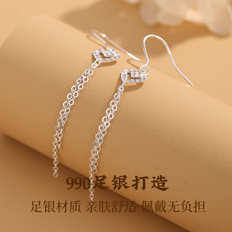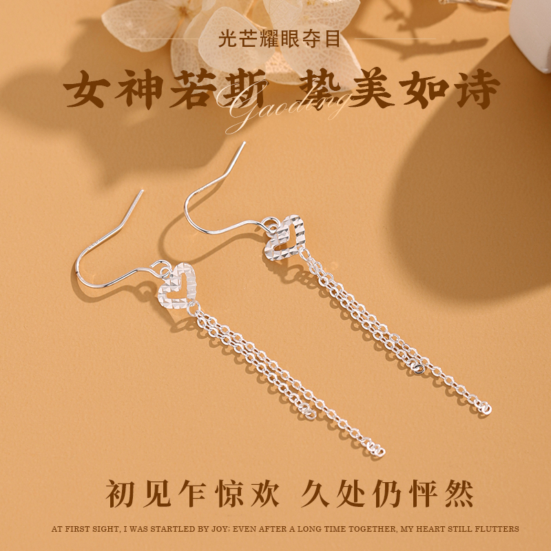 【志同珠宝】足银990爱心流苏耳环女小众设计感轻奢长款耳饰
