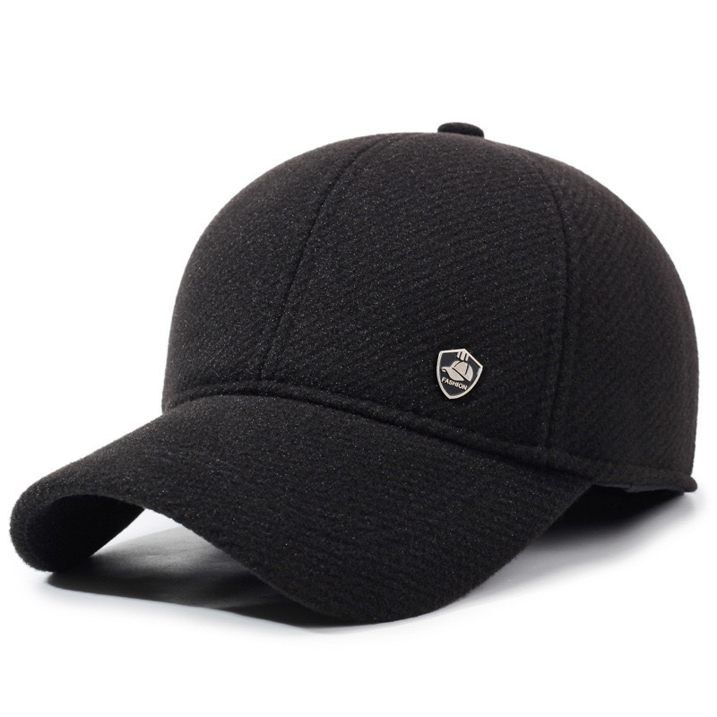 2025年新款中老年人帽子秋冬男士护耳鸭舌帽保暖棉帽条纹毛呢爸爸