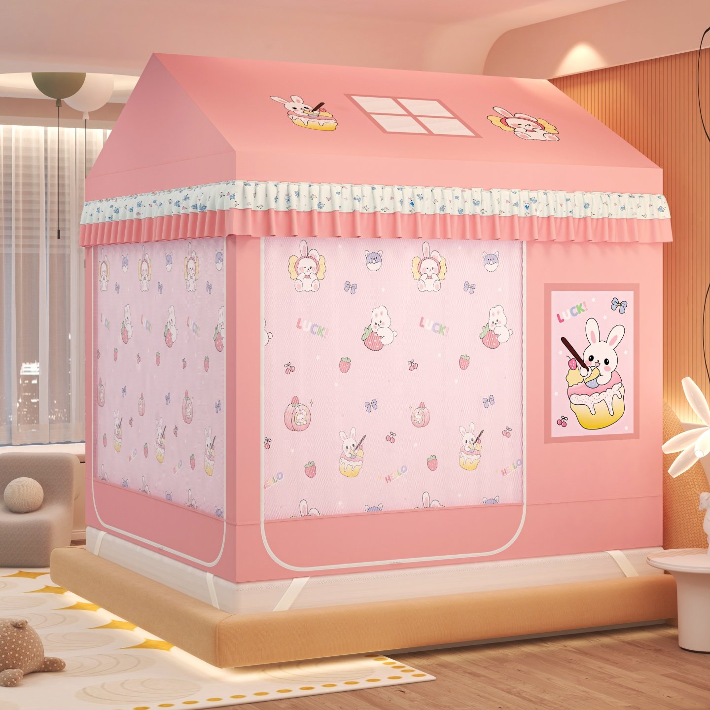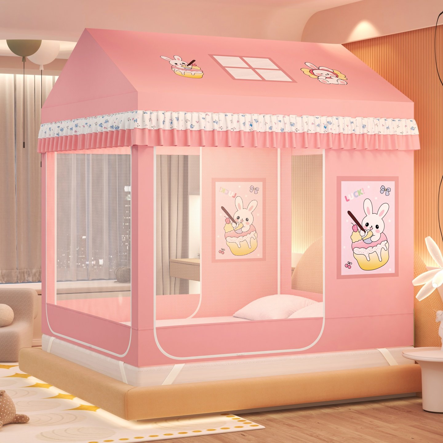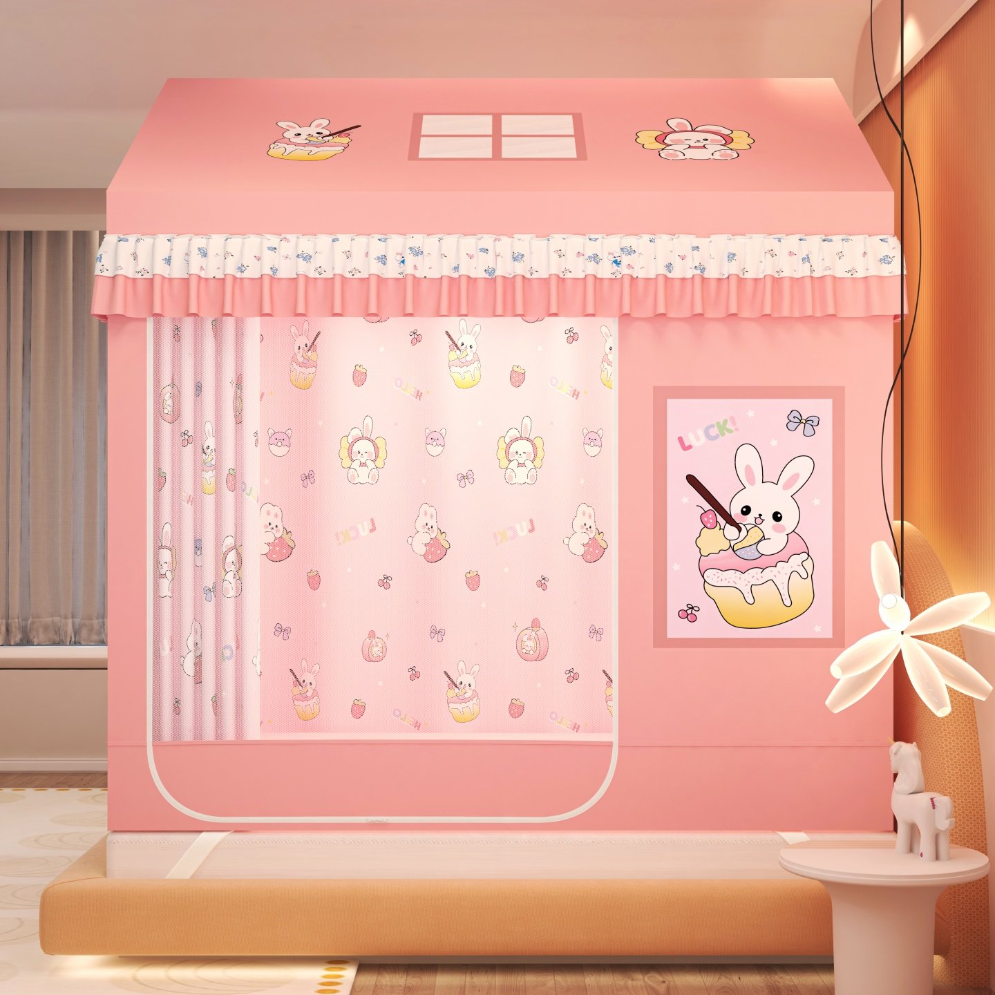 2025新款A类防尘遮光床帘三开门城堡坐床式蚊帐儿童防摔家用1.8米